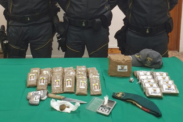 Dalla perquisizione dei veicoli si è quindi passati alle perquisizioni delle rispettive abitazioni dei soggetti; le complessive attività hanno consentito il complessivo rinvenimento di 4 kg di hashish, suddivisi in una trentina di panetti, recanti l’effigie di Bob Marley. Complessivamente, il valore sul mercato dello spaccio è superiore ai 30.000 euro. I due ragazzi sono stati tratti in arresto.