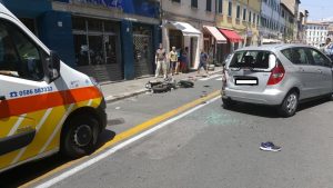Centauro 24enne contro auto in retromarcia: è grave