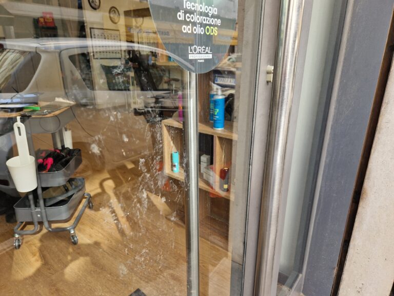 Hanno cercato di spaccare l’ingresso del salone di bellezza Starlight di via Leonardo Cambini dopo aver forzato ed alzato la saracinesca a protezione della porta a vetri. Il tutto è accaduto nella notte tra mercoledì 2 e giovedì 3 marzo. Per fortuna i malviventi sono stati forse disturbati da qualcosa o da qualcuno e hanno desistito nell’intento criminale non dopo aver provato a sfondare con delle pedate il vetro principale causando non pochi danni agli infissi. “Mi sono accorta che qualcosa non andava subito al mattino presto quando sono passata di qua davanti con l’auto cercando un parcheggio – spiega Lara Razzauti, dipendente dell’attività presa di mira dai ladri – Ho visto che la saracinesca era a mezz’asta ma ho pensato che qualche collega potesse essere già arrivata prima. Poi però, arrivata sul posto, mi sono accorta che la porta era completamente danneggiata e che sul vetro vi erano delle impronte di scarpa. Probabilmente i ladri hanno tentato di aprire o sfondare la porta con delle pedate ma poi non riuscendoci sono fuggiti. Certo è che adesso la porta non chiude più e saremo costretti ad effettuare un intervento di riparazione costoso per colpa di questo scherzetto notturno”.
