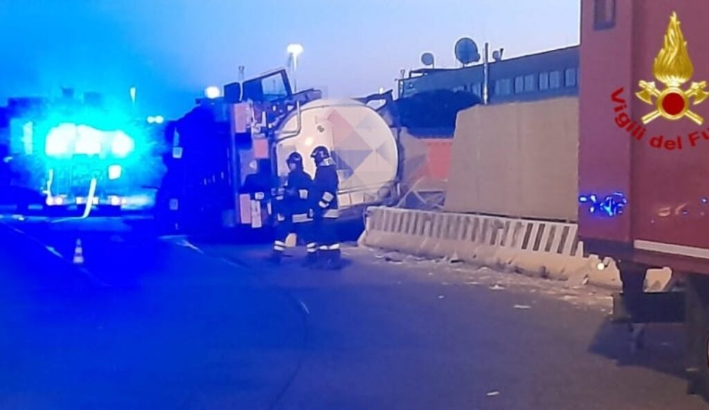 Cisterna con 15000 litri di etanolo si ribalta in zona portuale