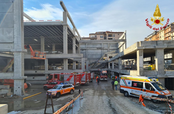 Il crollo del solaio nel cantiere edile, soccorsi dai Vigili del fuoco due operai tra le macerie (foto tratte da vigilfuoco.it)