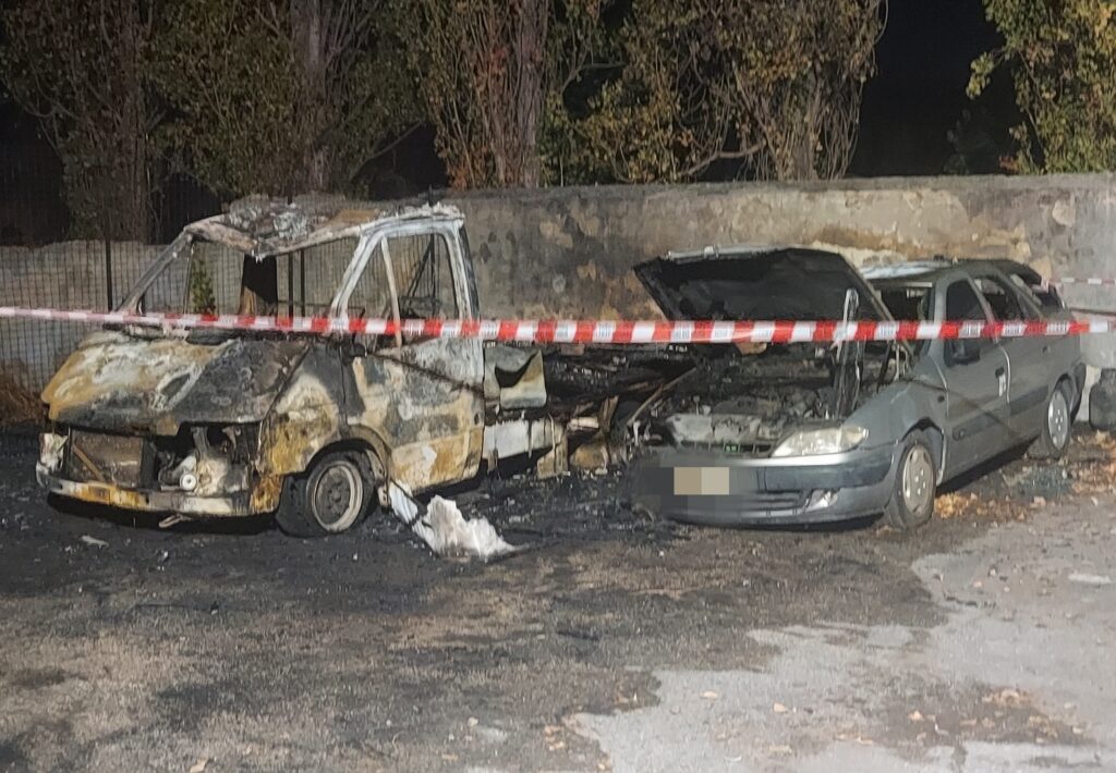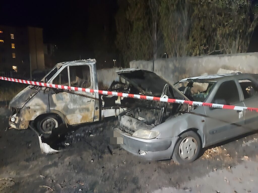Cortile di via Bruno: auto e camper a fuoco nella notte