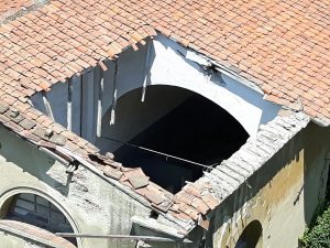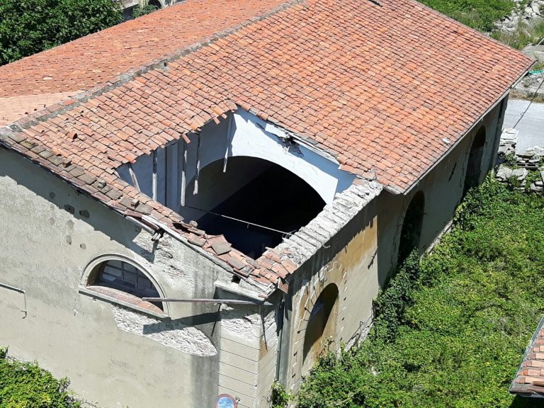 La notizia di queste ultime ore riguardante il crollo del tetto della vecchia struttura lasciata all’abbandono fa veramente riflettere e le immagini, come si vede da una foto scattata dall’alto dal nostro fotografo Simone Lanari, fanno impressione.
