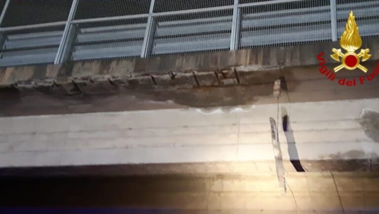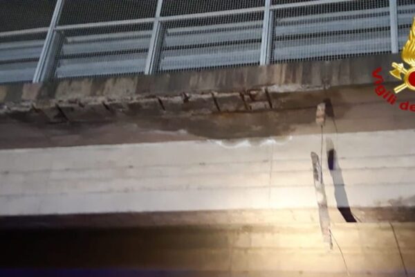 Intervento dei vigili del fuoco di Livorno a seguito della caduta di elementi in cemento del copriferro da un cavalcavia, precisamente il n° 110 lungo la SS1 Aurelia al km 294.500