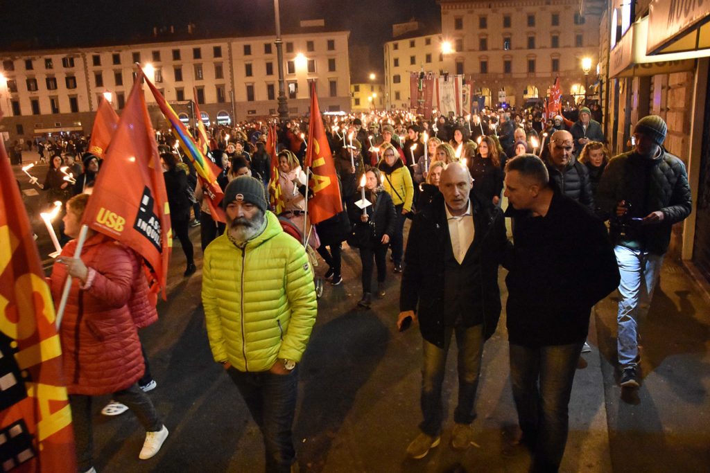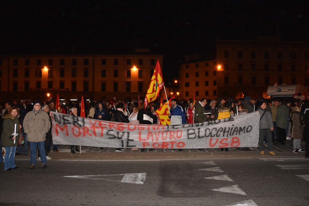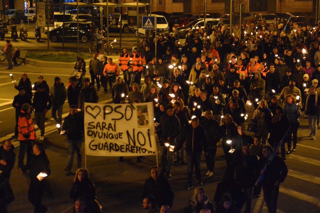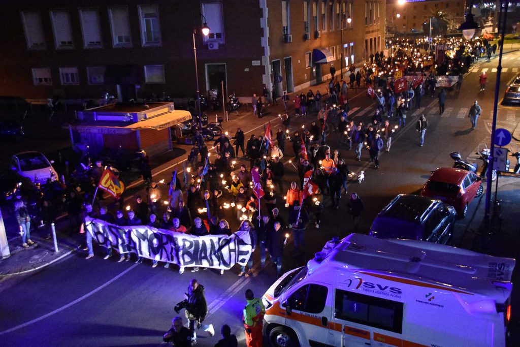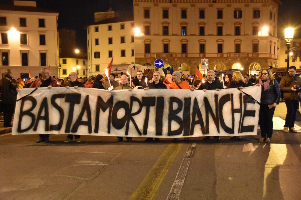 In migliaia hanno aderito alla fiaccolata indetta da Cgil, Cisl e Uil di giovedì 29 marzo (clicca sul link in fondo all’articolo per vedere le immagini all’interno della fotogallery di Simone Lanari). Un lungo cordone che si è esteso a partire da piazza della Repubblica per le vie del centro cittadino (via Grande e via San Giovanni) passando davanti alla sede dell’Autorità Portuale, per poi terminare al punto di partenza tra lacrime e commozione. C’erano tutti, dalle associazioni alla gente “comune”, dal mondo della politica ai colleghi di Lorenzo e Nunzio. Fiaccole accese e silenzio. Tanto silenzio che non basta a raccogliere l’immenso dolore di una città ferita a morte. La giunta e il sindaco Nogarin hanno preso parte a questa iniziativa. “Basta morti bianche”. Una scritta nera su di uno striscione bianco e dietro una marea umana. Ecco la risposta di Livorno a due inspiegabili e dolorosi lutti che hanno avuto come teatro e palcoscenico il posto di lavoro.
