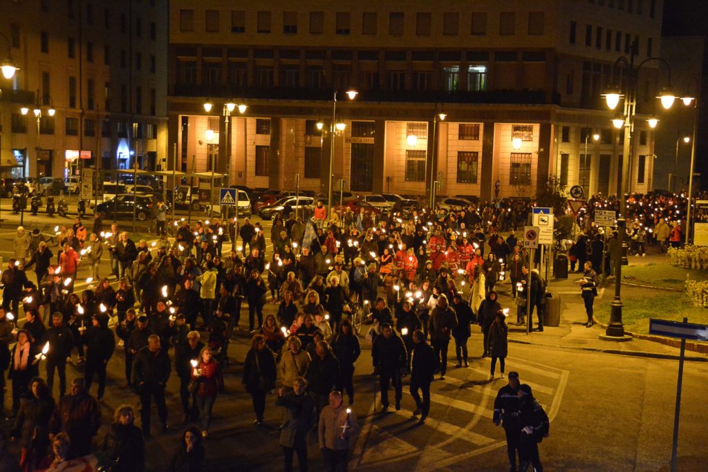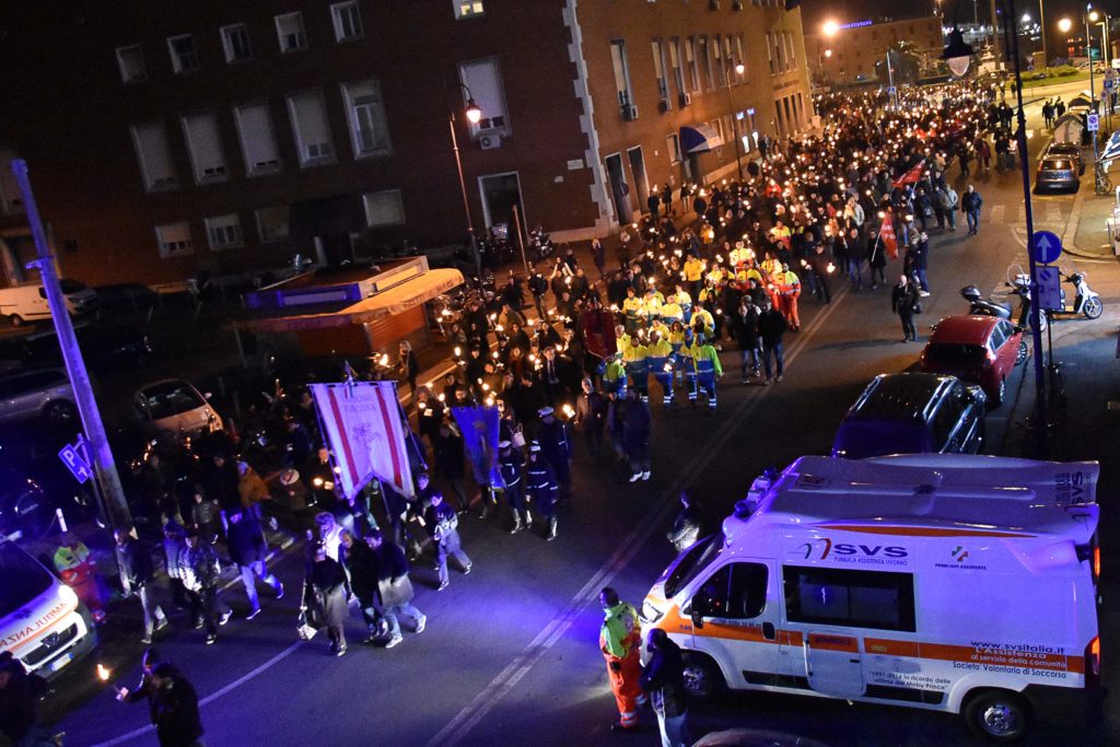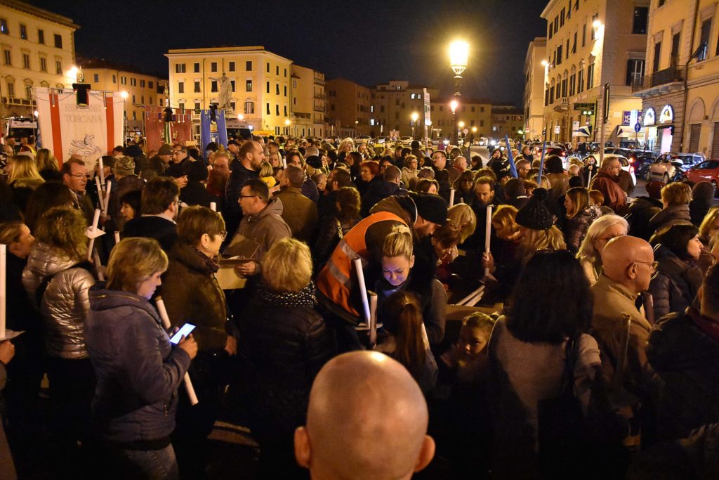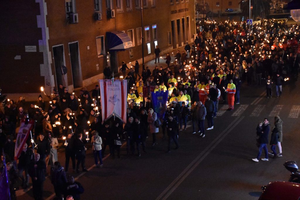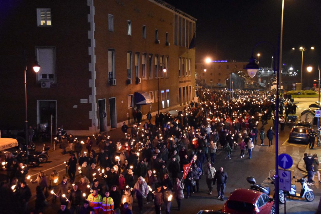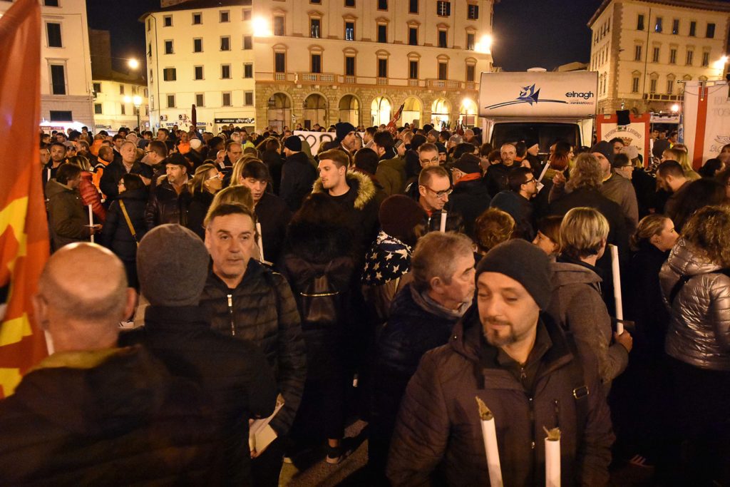 In migliaia hanno aderito alla fiaccolata indetta da Cgil, Cisl e Uil di giovedì 29 marzo (clicca sul link in fondo all’articolo per vedere le immagini all’interno della fotogallery di Simone Lanari). Un lungo cordone che si è esteso a partire da piazza della Repubblica per le vie del centro cittadino (via Grande e via San Giovanni) passando davanti alla sede dell’Autorità Portuale, per poi terminare al punto di partenza tra lacrime e commozione. C’erano tutti, dalle associazioni alla gente “comune”, dal mondo della politica ai colleghi di Lorenzo e Nunzio. Fiaccole accese e silenzio. Tanto silenzio che non basta a raccogliere l’immenso dolore di una città ferita a morte. La giunta e il sindaco Nogarin hanno preso parte a questa iniziativa. “Basta morti bianche”. Una scritta nera su di uno striscione bianco e dietro una marea umana. Ecco la risposta di Livorno a due inspiegabili e dolorosi lutti che hanno avuto come teatro e palcoscenico il posto di lavoro.