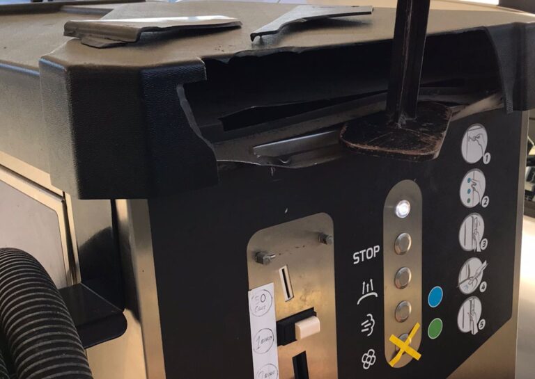 La volante l’ha sorpreso al distributore Tamoil in viale Petrarca. Alla vista delle divise il ragazzo è fuggito scavalcando la ringhiera del condominio confinante. Ne è nato un inseguimento: uno dei due poliziotti lo ha inseguito a piedi, mentre il collega ha chiesto rinforzi. E’ sopraggiunta una seconda volante che ha iniziato a perlustrare la zona trovando e fermando il ragazzo, che nel frattempo si era disfatto della felpa lanciandola sotto ad un’auto nel tentativo verosimilmente di non farsi riconoscere, in via Calzabigi. “Quando sono arrivato – racconta Emiliano, l’appaltatore del distributore – ho notato che era stato spaccato l’aspirapolvere e forzata l’idropulitrice del lavaggio self service (nelle foto). Non è stato portato via niente”. Nei confronti del 23enne sono al vaglio della direzione amministrativa della questura ulteriori provvedimenti di carattere inibitorio.