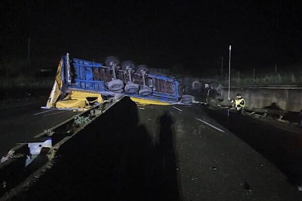 Sul posto dell’incidente si sono portati i mezzi del 118 con medico a bordo, la polizia stradale e i vigili del fuoco. A bordo del tir il conducente, un 30enne che per fortuna non ha riportato gravi conseguenze ma è stato trasportato in ospedale per ulteriori accertamenti.