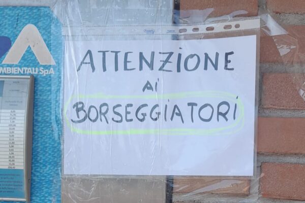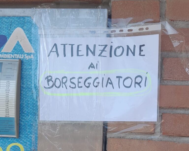 Attenzione ai borseggiatori è il cartello attaccato dall'Agraria Prisma, che ringraziamo per la disponibilità, per invitare tutti i cittadini a non lasciare l'auto aperta e effetti personali in vista durante ii rifornimento di acqua