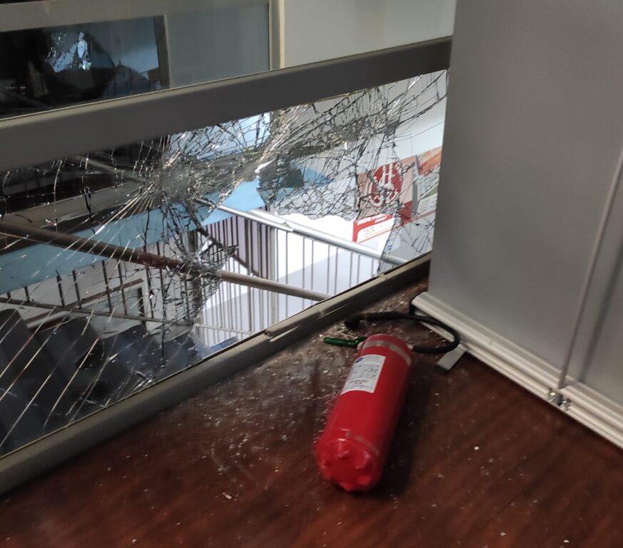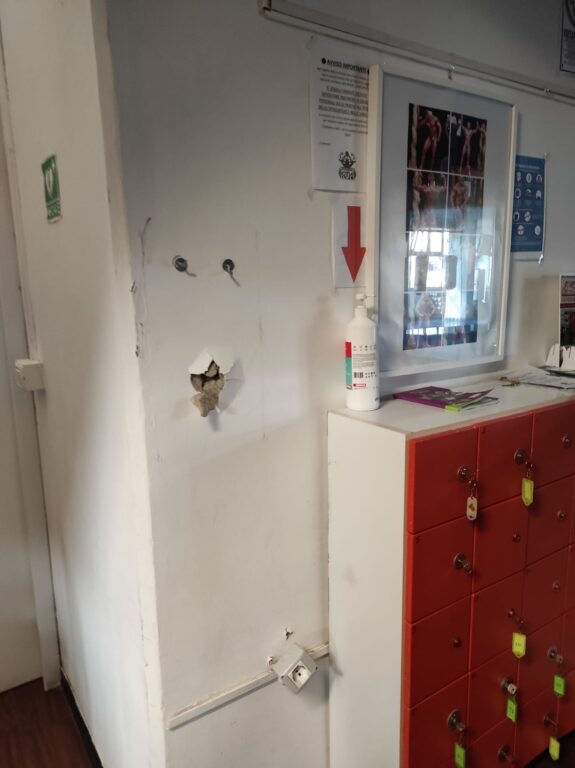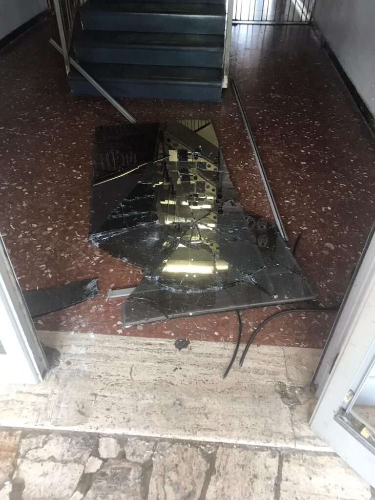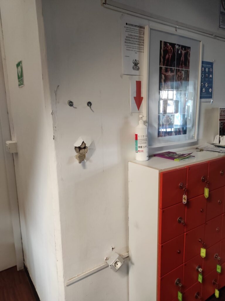 “Anche sabato scorso avevamo subito un intrusione – spiega Gjeli che ci ha fornito gentilmente le foto dei danni subiti dalla sua struttura – Ma questa mattina, alle 6,45 quando sono arrivato in via Allende ho trovato tutto completamente spaccato. I ladri hanno distrutto la vetrata d’ingresso, poi salendo al primo piano hanno devastato anche la vetrata subito a sinistra delle scale con gli estintori riuscendo così ad entrare dentro. Una volta nei locali hanno devastato la macchina del caffè rubando così gli spiccioli contenuti all’interno e hanno portato via la macchina cambia-gettoni che avevo. Solo quella è un danno da circa cinquemila euro circa. Le attrezzature da palestra? Non ci ho neanche fatto caso. É da stamani che corro tra denunce e telefonate a polizia e carabinieri“.