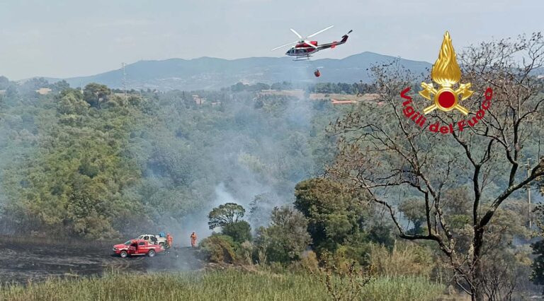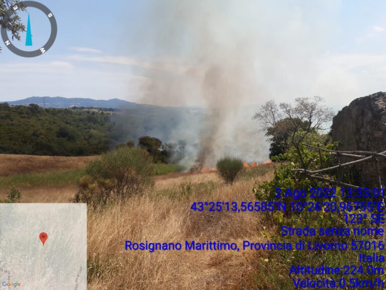 I vigili del fuoco di Livorno e la Svs di Livorno sono intervenuti insieme alla Pubblica Assistenza di Collesalvetti, alla Pubblica Assistenza di Rosignano e alla Pubblica Assistenza Alta Val di Cecina a Rosignano Marittimo, in località via Pel di Lupo, per un incendio di sterpaglie e bosco scoppiato nel primo pomeriggio del 2 agosto. Sul posto anche il Canadair, l’elicottero Drago 60 del reparto volo dei Vigili del Fuoco di Cecina e 2 elicotteri antincendio della Regione Toscana. Sono attualmente al lavoro, fanno sapere dal comando di via Campania, le squadre di terra a presidio delle abitazioni e le squadre AIB.