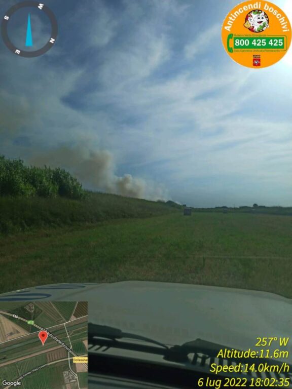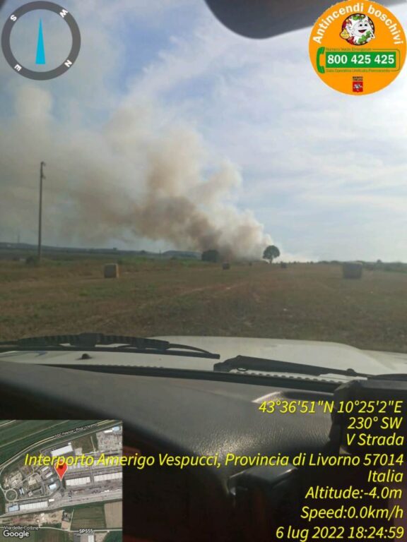 Incendio lungo lo Scolmatore, circa 8-9 ettari bruciati in zona Faldo il 6 luglio. Sul posto vigili del fuoco con l’elicottero Drago 60 da Cecina e le squadre di terra della Misericordia di Montenero e Anpas Collesalvetti.