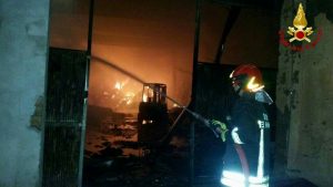 Sul posto sono dunque dovute intervenire numerose squadre dei vigili del fuoco a causa delle fiamme dure da spegnere che hanno provocato un fumo grigio intenso che si è alzato nel buio della notte.