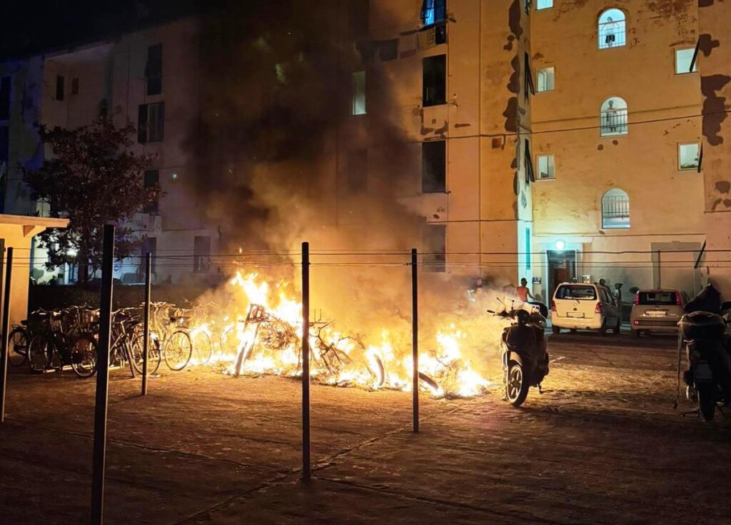 A fuoco ben quattro motorini, una moto e quattro biciclette. Chi ha potuto è sceso immediatamente nel cortile per provare a mettere in salvo il proprio mezzo. Sul posto sono arrivati i vigili del fuoco che hanno poi domato le fiamme e messo in sicurezza la zona avviando le indagini del caso sulle probabili cause che hanno portato all’incendio.