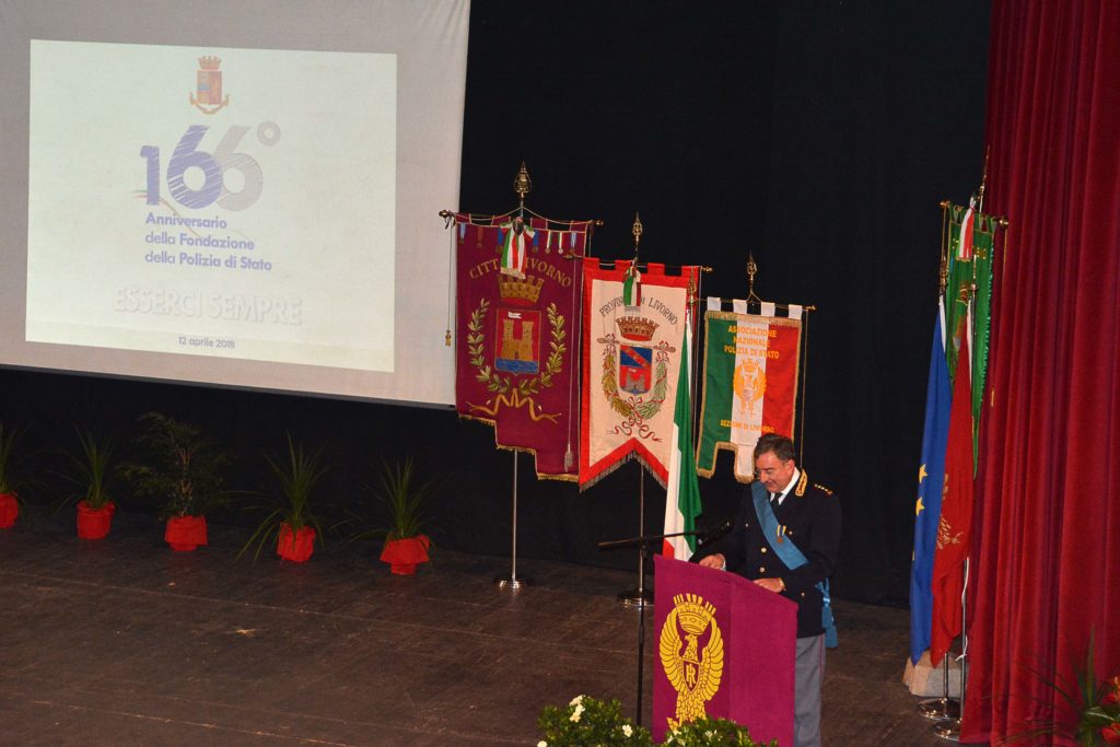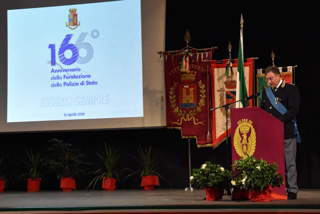 Sul palco è poi intervenuto il questore di Livorno, Orazio D’Anna, il quale ha ribadito il concetto dell’ “esserci sempre” per poi illustrare ai presenti alcuni numeri riguardanti l’attività di un anno di polizia. “Dopo quattro anno di calo costante gli ultimi 12 mesi hanno registrato un aumento del 6,5% dei reati rispetto alla scorsa stagione – ha detto il questore – con un totale si 228 persone arrestate e 1.788 denunciate tra il 1° marzo 2017 e il 28 febbraio 2018 nella provincia di Livorno. In questo arco di tempo il “113” ha ricevuto la bellezza di 42.566 telefonate e gli interventi delle volanti sono stati pari a 7.390. Sono aumentati soprattutto i furti e le minacce: +14% in confronto allo scorso anno. Da segnalare poi – ha aggiunto il numero uno della questura – le violenze sulle donne e in famiglia, entrambi generi di reato in aumento, e lo spaccio di droga, fenomeno che purtroppo coinvolge anche i più giovani. In calo invece le rapine e soprattutto le violenze sessuali, scese rispettivamente del 6 e del 37%”.