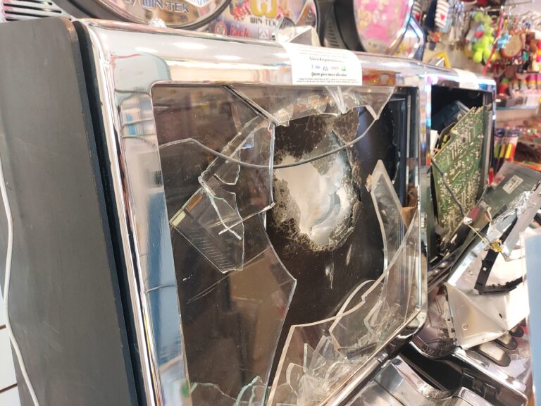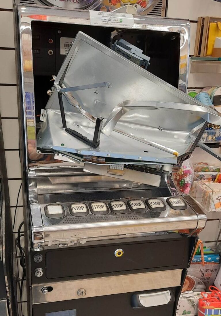 Nonostante questo i delinquenti hanno arraffato quanto potevano, portando via due sacchi della spazzatura di refurtiva tra sigarette, gratta e vinci e oggetti vari in vendita nell’attività commerciale provando anche a devastare le due slot machine presenti all’interno della tabaccheria in cerca di monete. Tentativo, questo, andato a vuoto in quanto le macchinette che, come si vede anche dalle foto in pagina, sono state danneggiate irrimediabilmente, non hanno ceduto tanto da aprire il cassetto contenente le monete.
