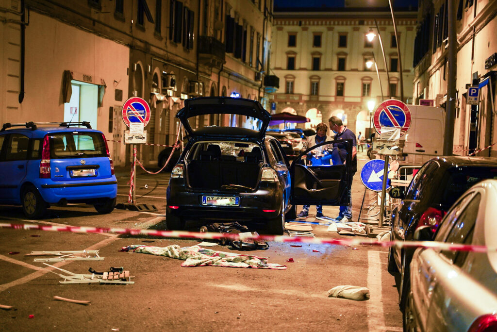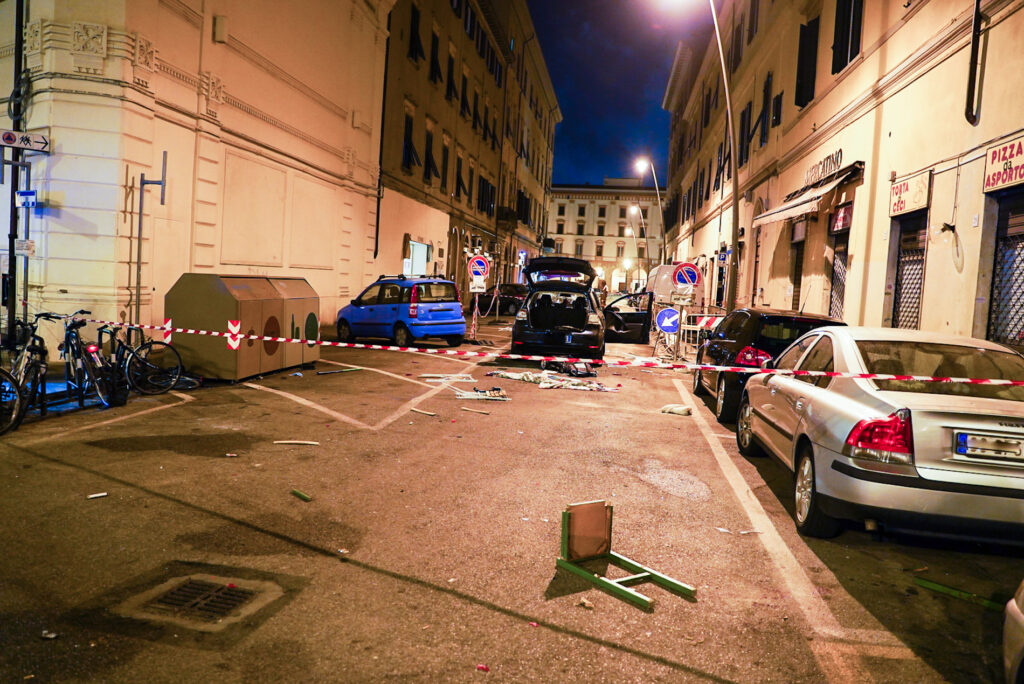 Una mega rissa probabilmente tra due schieramenti o due “bande” rivali di nordafricani in via Buontalenti all’angolo con via del Fante (foto Lorenzo Amore Bianco). Il tutto si è sviluppato intorno tra le 21,15 e le 21,30 di mercoledì 15 settembre quando circa venti persone, come ricostruito sommariamente dalla questura, si sono fronteggiate a viso aperto danneggiando gravemente le auto parcheggiate in strada, alcuni tavolini e arredamenti esterni dei locali della zona.