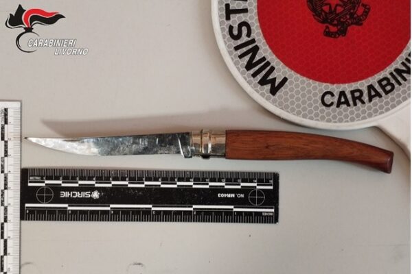 I Carabinieri del Nucleo Operativo e Radiomobile di Livorno hanno denunciato un 52enne per porto abusivo di armi o oggetti atti ad offendere. Alle 4 del mattino circa tra sabato 12 e domenica 13 scorsi i militari sono intervenuti per una lite segnalata nei pressi di un bar in zona stazione, nel corso della quale un uomo avrebbe minacciato i presenti con un coltello. All’arrivo, i militari hanno individuato il 52enne come colui che avrebbe utilizzato il coltello e, sottopostolo a perquisizione, effettivamente gli rinvenivano l’arma occultata in una scarpa.