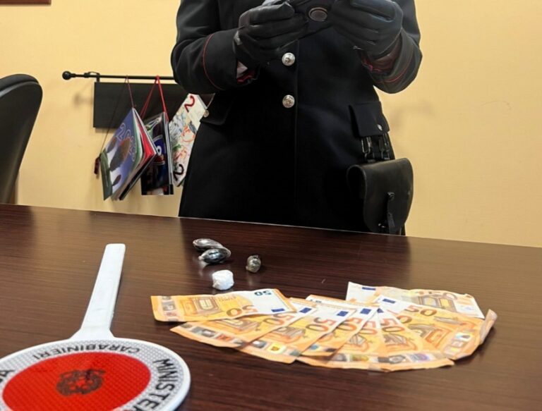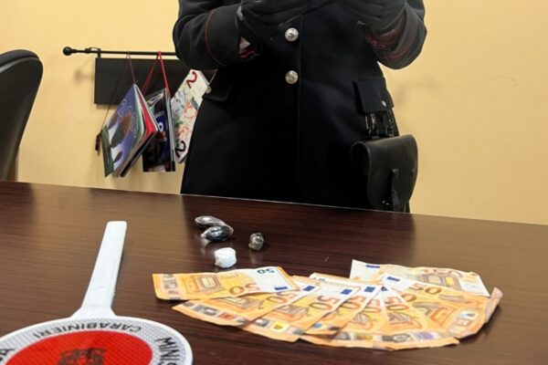 Oltre all’involucro abbandonato, contenente 3,5 grammi di cocaina, a seguito di perquisizione personale e domiciliare i carabinieri hanno rinvenuto 30 grammi di hashish suddivisi in tre ovuli e 450 € in contanti, verosimile provento dell’attività di spaccio.