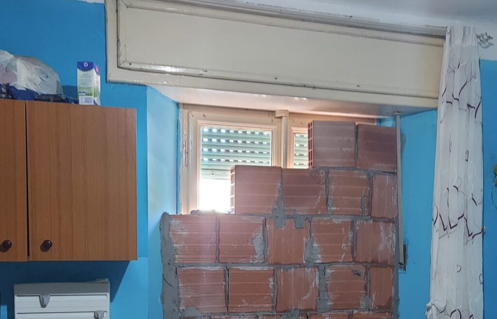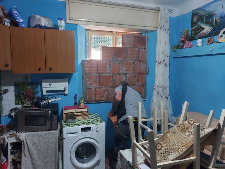 Nelle foto la chiusura della finestra di un alloggio e le forze dell'ordine in via Giordano Bruno