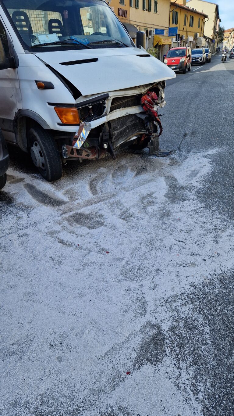 Come si vede dalle foto scattate intorno alle 10 del 2 aprile dalla nostra redazione sopraggiunta sul posto con un cronista, quello che risulta più danneggiato è un mezzo da lavoro devastato nella parte anteriore dove sarebbe rimasta anche una parte di carrozzeria dell’auto di color rosso-amaranto del conducente della vettura che ha causato i danneggiamenti. Danneggiate poi in maniera più lieve anche altre tre auto, vittime della carambola, e un furgoncino di una ditta privata.
