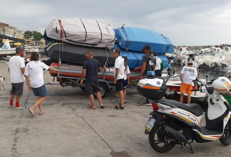 A bordo dello scooter, durante un controllo al moletto di Antignano, la squadra Svs ha soccorso un uomo colpito accidentalmente ad una gamba da un carrello porta imbarcazioni, poi trasportato al pronto soccorso da una ambulanza della Svs arrivata dalla sede di Ardenza