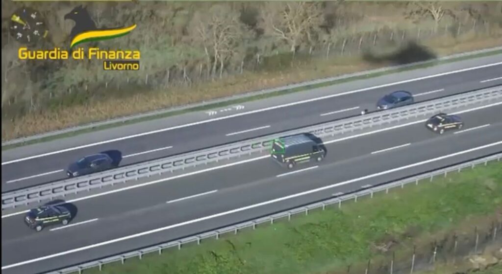 Su Instagram abbiamo pubblicato il video della scorta ai furgoni mentre trasportano la cocaina, e merce contraffatta, all’inceneritore