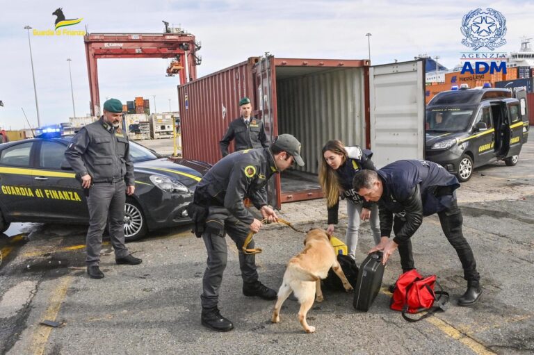 dai Finanzieri di Livorno: ben 50 kg di cocaina pura suddivisa in decine di panetti. L’ingegnoso sistema di occultamento, si legge in un comunicato stampa dell’11 agosto, è stato scoperto nel corso di un quotidiano controllo svolto nelle aree commerciali del porto labronico. Per cercare di ingannare le attività ispettive, i panetti di “neve” erano stati nascosti nella struttura del contenitore che trasportava un carico alimentare dal Sud America. L’analisi dei rischi, l’esperienza e le risorse messe in campo da ADM e dalle Fiamme Gialle, col supporto degli strumenti in dotazione all’Agenzia delle Dogane e Monopoli e delle unità cinofile della Guardia di Finanza sono state fondamentali nel ritrovamento, che ha avuto degli sviluppi successivi. Nel corso delle attività, grazie alla prontezza operativa e perspicacia dei finanzieri, è stato anche tratto in arresto un soggetto. L’operazione segna un ulteriore tassello a favore della lotta al narcotraffico sul territorio toscano e nazionale ed è il risultato di una quotidiana e metodica attività di controllo “sul campo”, rafforzata dall’esecuzione del Protocollo d’intesa relativo ai rapporti di collaborazione tra l’Agenzia delle Dogane e dei Monopoli e la Guardia di Finanza. Lo stupefacente, dopo essere stato campionato ed analizzato dal laboratorio della Agenzia delle Dogane, verrà distrutto nell’inceneritore e così strappato alle piazze di spaccio dove avrebbe fruttato alla criminalità organizzata oltre 35 milioni di euro. Le attività, effettuate in stretta sinergia operativa tra Fiamme Gialle ed ADM, sono state coordinate dalla Procura della Repubblica di Livorno che ha convalidato il sequestro.