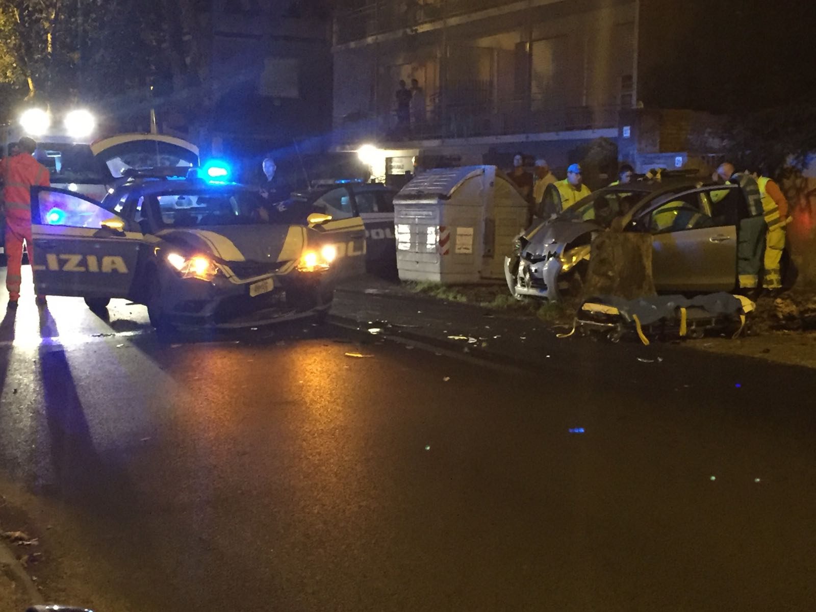 Pauroso incidente verificatosi alle 00.15 di giovedì 27 ottobre tra una volante della polizia di Stato e una Toyota Yaris con a bordo tre donne. Lo schianto frontale, le cui cause sono ancora da accertare, è accaduto in via Montebello all’altezza del numero 50. Secondo una prima ricostruzione della dinamica effettuata grazie ai rilievi della polizia municipale intervenuta sul posto, l’auto della polizia che, come sottolinea l’ufficio stampa della Questura, stava procedendo in direzione viale Italia per rientrare in caserma a sirene spente a seguito di un intervento, si è scontrata in maniera violenta contro un’utilitaria la quale, con tutta probabilità, era in fase di svolta a sinistra in via Carlo Pisacane. Sull’asfalto è stato possibile riconoscere i lunghi segni della frenata riconducibili alla macchina delle forze dell’ordine.