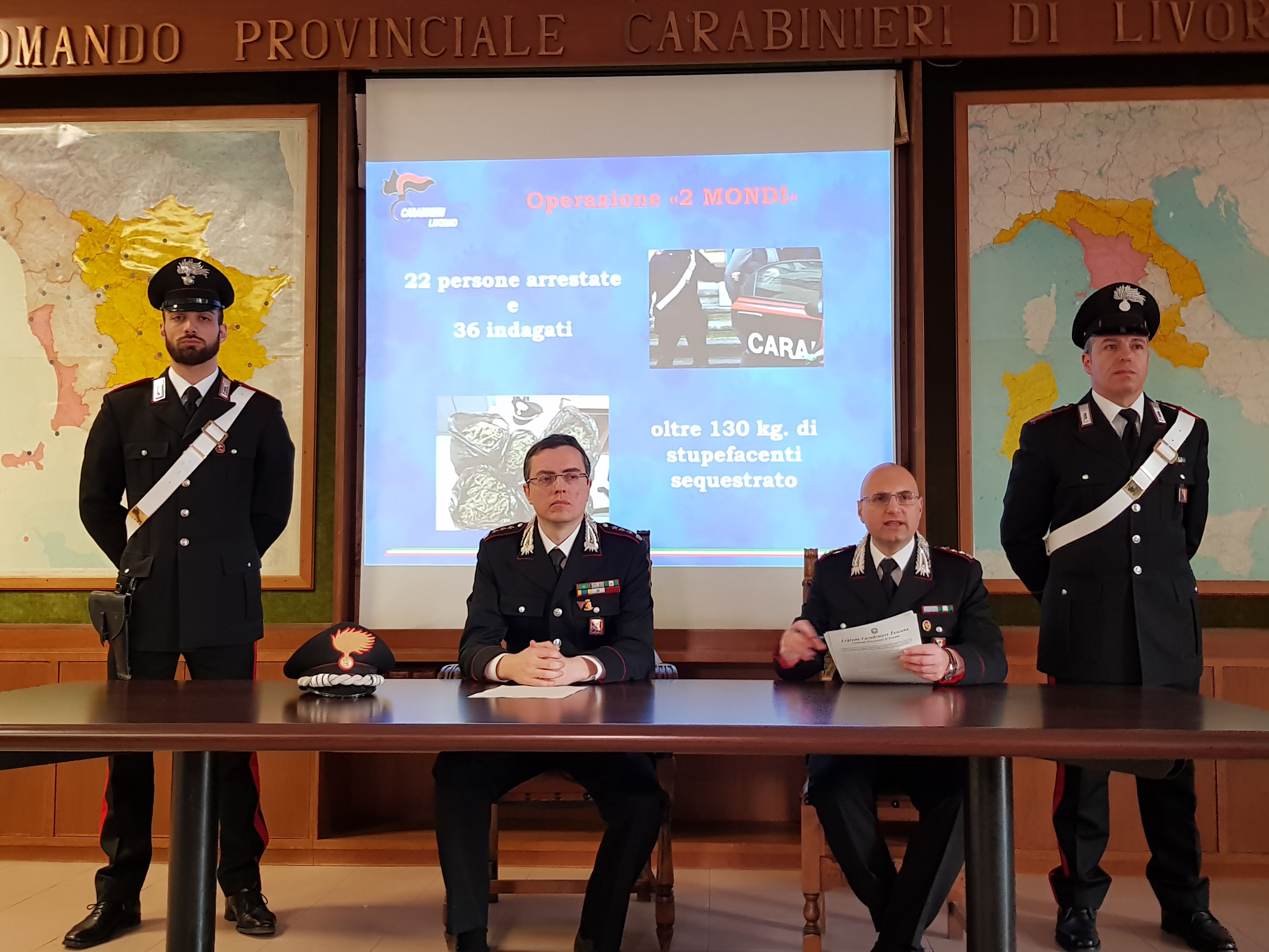 Nelle prime ore di martedì 26 febbraio, i carabinieri di Livorno, con il supporto dell’Arma di Pisa, su ordine della procura della Repubblica di Livorno, hanno dato il via all’operazione denominata “Due Mondi”, dando esecuzione ad un’ordinanza di custodia cautelare emessa dal Gip nei confronti di 10 persone, italiane ed albanesi, ritenute responsabili del reato di “traffico illecito di sostanze stupefacenti”, nelle province di Livorno e Pisa (clicca sul link al pdf in fondo all’articolo per consultare le schede tecniche dell’indagine e il video con alcuni particolari dell’inchiesta).