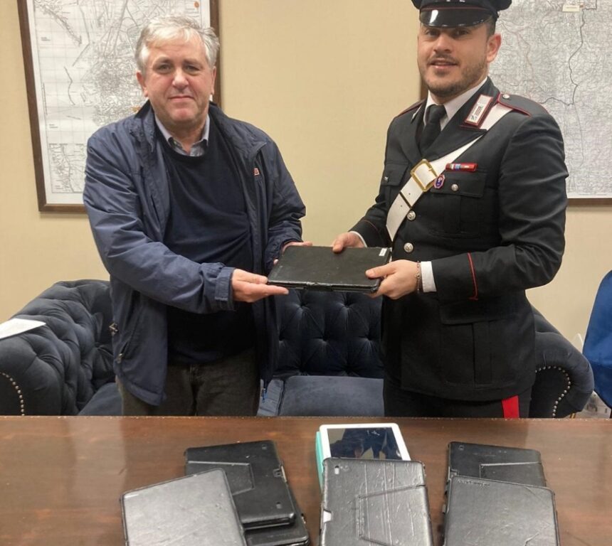 I tablet sono stati restituiti al dirigente scolastico, erano stati rubati all’interno di una scuola secondaria di 1 grado: denunciati per ricettazione un 43enne e un 20enne. L'Arma invita a segnalare sempre e il prima possibile in modo da consentire un pronto intervento