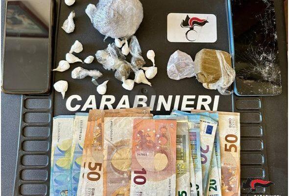 Sequestrati durante la perquisizione personale e veicolare 15 dosi di cocaina per un peso totale di 12 grammi, 56 grammi di hashish, 4 pasticche di metanfetamina del peso complessivo di circa 1 grammo e 540 euro in contanti