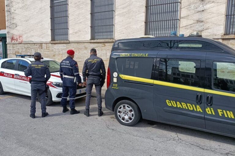 Mercoledì 11 luglio si è svolta un’operazione congiunta tra Polizia Municipale (Nucleo di Polizia Giudiziaria-Investigativa, Nucleo Polizia Commerciale e Nucleo Prossimità) e Guardia di Finanza (presente anche con il Nucleo Cinofilo) finalizzata al contrasto dello spaccio di sostanze stupefacenti. Come si legge in un comunicato del 13 luglio a seguito del controllo che ha interessato il quartiere Shangai, dove era stata segnalata una recrudescenza del fenomeno, sono state identificate e denunciate 2 persone. La prima per spaccio di sostanze stupefacenti in quanto colta in flagranza di reato mentre cedeva una dose dietro corrispettivo ad altro soggetto (segnalato successivamente alla Prefettura quale assuntore), e per furto di energia elettrica accertato a seguito della perquisizione domiciliare effettuata alla propria residenza; la seconda per detenzione ai fini di spaccio di sostanze stupefacenti rinvenute nel suo appartamento a seguito di perquisizione domiciliare, e detenzione abusiva di armi. Nello specifico sequestrati circa 200 grammi tra hashish e cocaina, 90 € provento di spaccio, un macete, un’accetta, un coltello a lama fissa e una cartuccia calibro 12