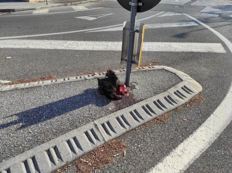 Trovata (e rimossa) una testa di cinghiale alla rotatoria di via Orosi