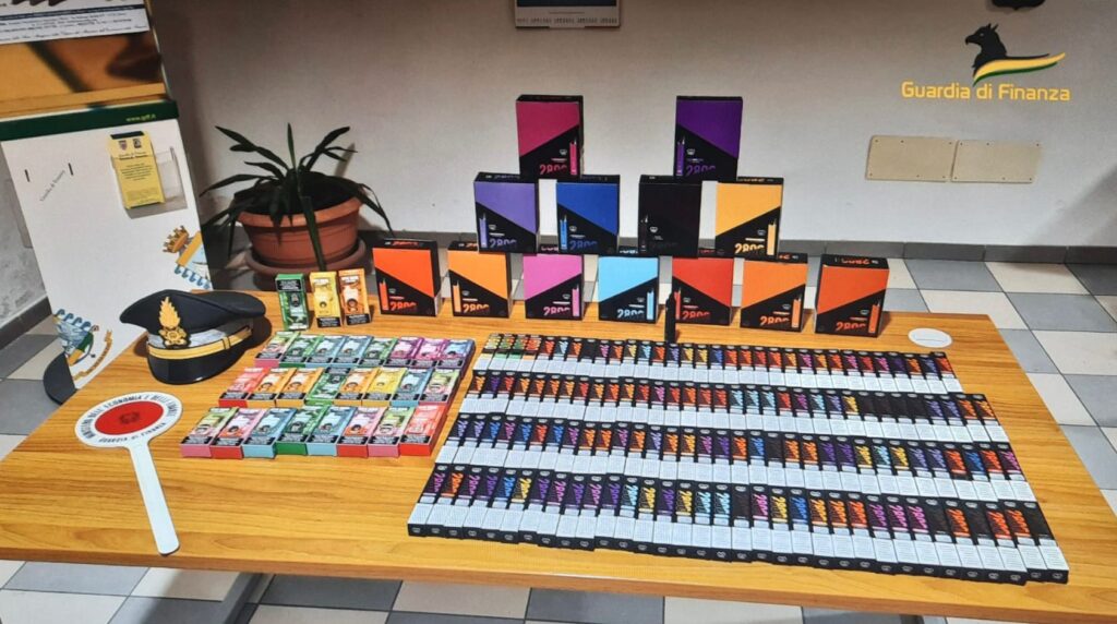 Dopo essere stato trovato in possesso di una piccola quantità di sigarette elettroniche, pronte per la vendita, le successive attività di perquisizione domiciliare hanno consentito il ritrovamento di ulteriori sigarette elettroniche (per un totale di ben 158), prive del sigillo di Stato (contrassegno dei Monopoli), nonché il relativo liquido/ricariche da inalazione (per un peso complessivo superiore agli 8 kg). Il tutto privo di ogni benché minima traccia documentale dell’origine, sicurezza e garanzia dei prodotti, con gravissimi rischi per i giovani acquirenti in termini di sicurezza e salubrità.