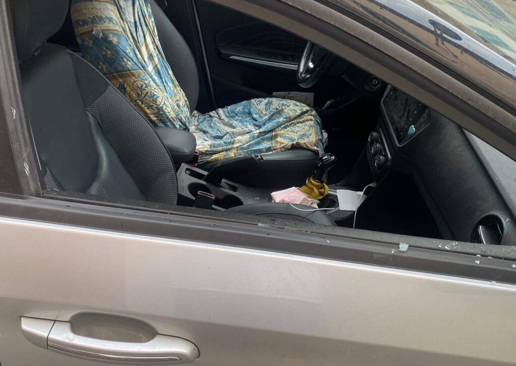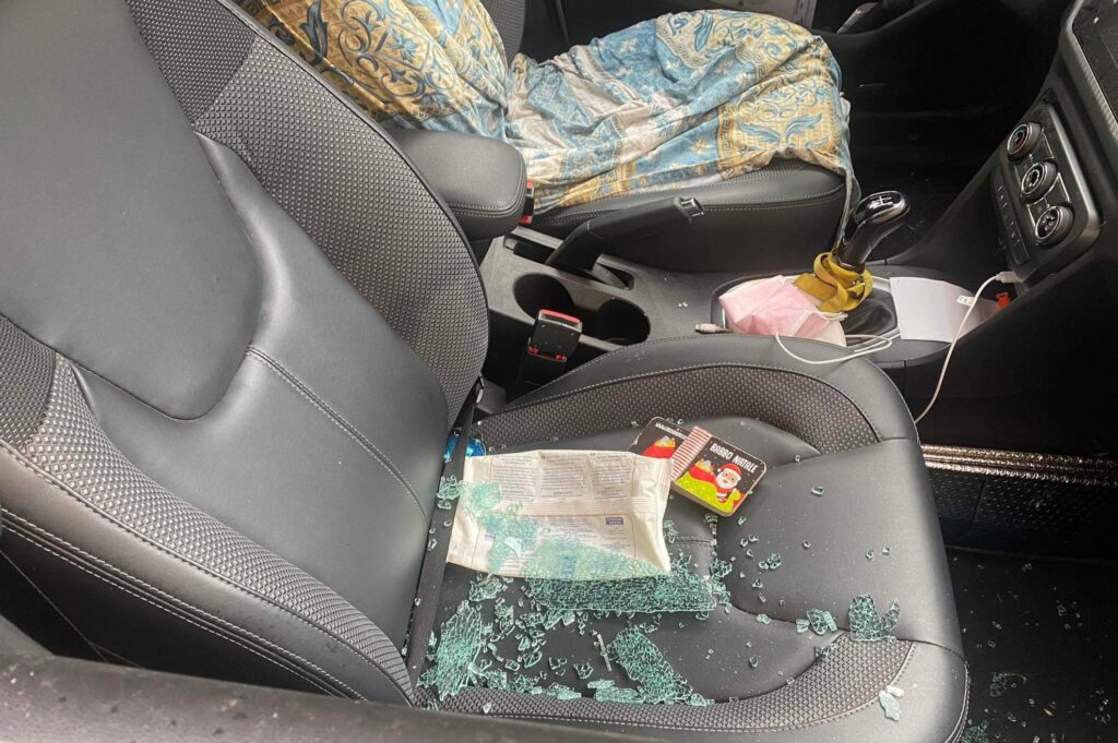 Nelle foto inviate dalla nostra lettrice, che ringraziamo, il vetro anteriore dell'auto spaccato