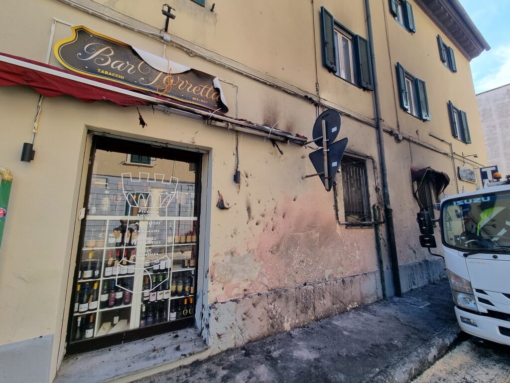 Nella prima foto un fermo immagine del video che potete vedere cliccando sul bottone in alto sopra al titolo; nelle successive immagini i danni esterni riportati dal Bar Torretta