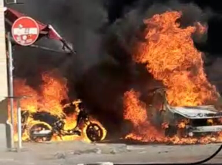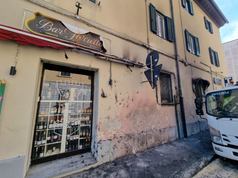 Tre auto e due scooter distrutti e per irraggiamento danneggiati anche un altro scooter e un’altra auto. E’ il bilancio dell’incendio, avvenuto intorno alle 16,30 del 4 maggio in via Demi angolo piazza della Vittoria (già piazza Magenta), domato tempestivamente dai vigili del fuoco intervenuti sul posto. A questo bilancio dobbiamo poi aggiungere i danni riportati dal Bar Torretta dove all’indomani dell’accaduto la paura è passata. “Stavamo lavorando – racconta Piero, uno dei soci titolari a QuiLivorno.it, che ringraziamo per la disponibilità e il video dell’incendio – quando dall’interno abbiamo visto le fiamme alle finestre che danno su via Demi. Sono stati momenti di grande apprensione. Per fortuna lo spessore dei vetri, che comunque si sono incrinati, ha evitato danni peggiori. Ad un tratto è entrato un passante chiedendoci un secchio d’acqua e glielo abbiamo fornito”. Le fiamme hanno annerito la parete del condominio, danneggiato l’insegna e le tende del bar e come detto incrinato i vetri. Sulle cause che hanno determinato il rogo sono in corso accertamenti. Sul posto, in via precauzionale, un’ambulanza della Svs da via San Giovanni arrivata prontamente per prestare eventuale ausilio ai bisognosi. Per fortuna nessuno è rimasto ferito.