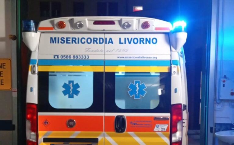 Gravi le sue condizioni: il paziente è stato trasportato con un politrauma in codice rosso al pronto soccorso di Livorno da un'ambulanza con medico a bordo della Misericordia di Livorno