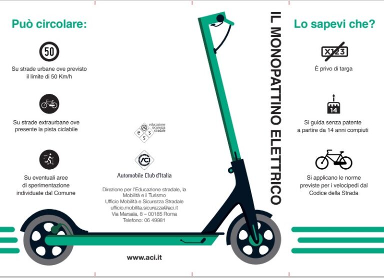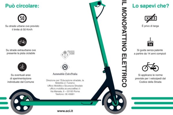 In relazione a tale tema, da settembre è già presente sul portale del Ministero dell’Istruzione “Edustrada” la proposta del nuovo modulo di educazione Stradale Aci sulla micro mobilità, con una sezione dedicata al monopattino (https://educazionestradale.aci.it/).
