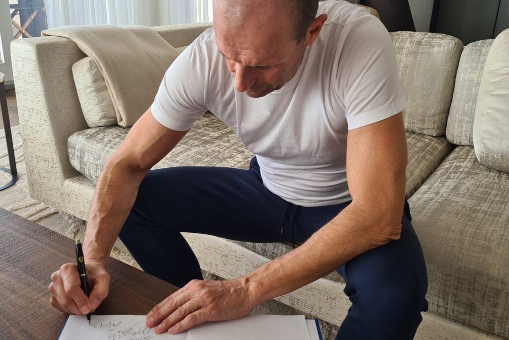 “Con stima, affetto e simpatia”. Detto, fatto. Stamattina Massimiliano Allegri, che ringraziamo per la disponibilità, ha autografato la tesi di laurea di Massimo, il neo laureato in comunicazione pubblica e d’impresa alla Sapienza di Roma che il 10 ottobre era venuto in città con la tesi dedicata al mister con la speranza di incontrarlo e di farsela autografare. Quel giorno il giovane non aveva potuto incontrarlo di persona poiché Massimiliano non era a Livorno. Tuttavia era riuscito a consegnare la tesi ad un parente e persino a parlargli telefonicamente – grazie all’amico del mister, Massimo Ciantelli direttore Cooperativa Tennis Livorno che dopo aver letto il nostro articolo ha subito preso a cuore il sogno di Massimo, e al “gancio” Gabriella Carocci – che nel corso della telefonata ha promesso che gliela avrebbe firmata molto volentieri. Cosa che stamattina è avvenuta. Sarà ora cura della famiglia Allegri spedire la tesi a Massimo. La notizia, essendo coinvolto un personaggio di questo calibro, aveva fatto subito il giro delle testate sportive nazionali, finendo persino sulla seguitissima pagina Instagram Calciatori Brutti. E chissà che non si ripeta.
