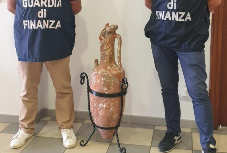Era esposta in salotto come un normale vaso di terracotta ed invece si trattava di un’anfora romana sottratta al Patrimonio dello Stato. Questo è quanto hanno scoperto, all’interno di un’abitazione privata della città labronica, i finanzieri della Stazione Navale di Livorno durante un’operazione a tutela del patrimonio archeologico. L’attività, effettuata sulla base dell’attività investigativa svolta, si è conclusa con il sequestro del manufatto di pregevole valore storico-culturale.