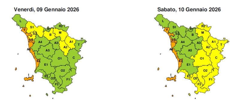 Il Centro funzionale meteo della Protezione civile regionale ha aggiornato il quadro delle criticità in corso sulla Toscana. Per quanto riguarda Livorno, Gorgona, le altre isole dell’Arcipelago e la costa centro-settentrionale della regione, l’allerta arancione in corso per rischio mareggiate è prolungata fino alle ore 9 di domani, sabato 10 gennaio. A seguire sarà codice giallo, sempre per rischio mareggiate, in vigore fino alla mezzanotte (ore 23.59) di domani, sabato 10 gennaio. Confermato anche il codice giallo in corso per rischio vento, in vigore fino alla mezzanotte (ore 23.59) di oggi, venerdì 9 gennaio. Oggi forti venti di libeccio-ponente con raffiche fino a 80-100 km/h, domani (sabato) venti di maestrale con raffiche fino a 70-90 km/h sull’Arcipelago, fino a 50-70 km/h sulla costa. Mari da agitati a molto agitati, in attenuazione dal pomeriggio di sabato. Vista la tipologia di rischio annunciato, in concomitanza con l’allerta arancione per mareggiate a Livorno non sono previste sospensioni delle attività didattiche né chiusure dei parchi e dei cimiteri cittadini (salvo inattesi peggioramenti della situazione meteorologica). L’Amministrazione comunale raccomanda alla cittadinanza di seguire i consigli della Protezione civile, tra i quali quello rivolto soprattutto a pedoni e guidatori di mezzi a due ruote di evitare per quanto possibile il transito lungo i viali a mare durante le fasi di criticità per rischio mareggiate. Il viale Italia, soprattutto nel tratto tra la Baracchina Bianca e l’intersezione con via Forte dei Cavalleggeri, potrà essere chiuso al traffico su indicazione della Protezione civile comunale e della Polizia Municipale, a seconda della forza delle mareggiate e della presenza di detriti in carreggiata.