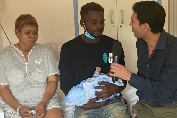 La mamma e il babbo di Harrison durante l'intervista di Rai 1 nel reparto di Ostetricia e Ginecologia dell'ospedale San Giacomo di Novi Ligure, che ringraziamo per la foto e la disponibilità