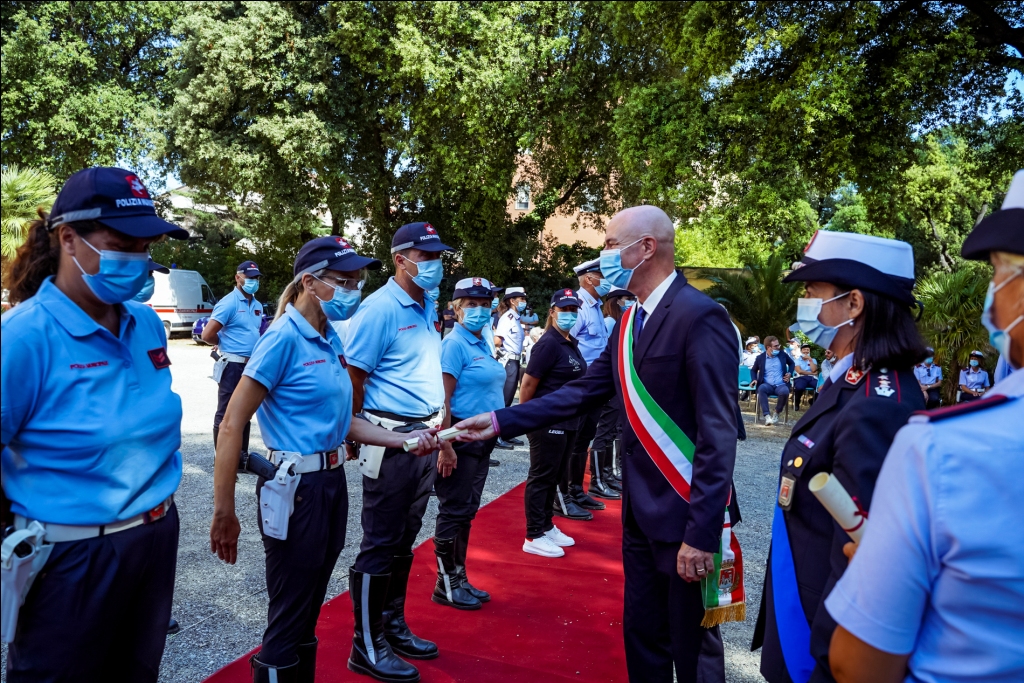 Salvetti: “Sempre più livornesi si rivolgono a voi. Che sia motivo di orgoglio e non un peso” – “Totalizzanti, entusiasmanti, complicati, impegnativi e gratificanti. Questi sono gli aggettivi che mi sono venuti in mente ripensando a questi 12 mesi in cui ho lavorato con gli uffici comunali e con il Corpo della Polizia Municipale – ha detto il sindaco Luca Salvetti prendendo la parola in seguito alla comandante Maritan – Nove mesi in cui abbiamo riorganizzato il Corpo con l’incarico alla nuova comandante e con l’inserimento di nuovi elementi in un gruppo che era ridotto all’osso e che aveva un’età media molto elevata e che anche adesso non ha raggiunto l’ideale conformazione numerica. Poi abbiamo vissuto tre mesi difficilissimi, quelli legati al Covid. E con tutte le complicazioni relative di una città che doveva essere tenuta deserta e gestita invece in quei luoghi dove erano previsti assembramenti. Novanta giorni dove tutti stavano a casa, e voi, agenti della Municipale, con pochi altri, eravate per strada rischiando tantissimo ma con il giusto spirito di servizio. Un ringraziamento speciale a tutti voi per come avete saputo interpretare il vostro ruolo e l’input che avevo dato un anno fa: ovvero quello di avere uomini e donne che affiancavano i cittadini e gli aiutavano a comportarsi nella maniera migliore e rendere la città più bella e ordinata. Un grazie speciale ad Annalisa Maritan che in questi primi mesi ha dimostrato le sue dote umani e professionali, agli ufficiali che sono delle certezze per me e per il comandante, a chi sta negli uffici e a chi, giornalmente, è sulle strade a regalare l’immagine più bella del Corpo. E ricordate una cosa: alla Municipale si rivolge sempre più gente, lo abbiamo visto con i numeri delle chiamate ricevute in un anno, la gente chiede e vuole il vostro intervento. Questo per tutti voi non deve essere un peso, anzi: deve essere un motivo di orgoglio. Perché tutti noi nei momenti più belli o in quello complicati ci rivolgiamo a coloro di cui ci fidiamo o di cui abbiamo stima. Questo stanno facendo i livornesi con tutti voi”.