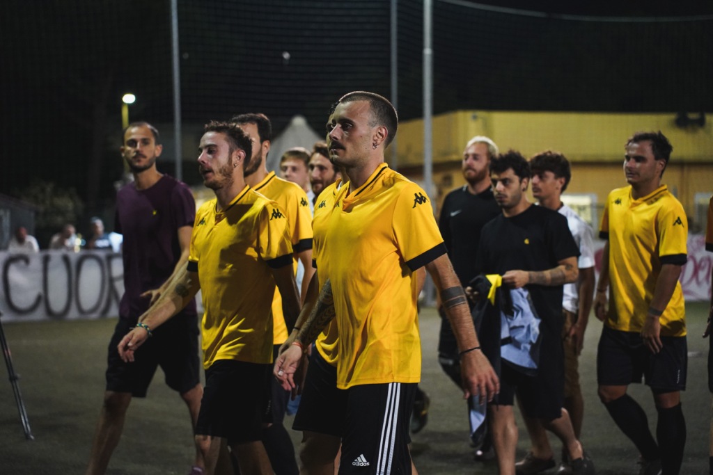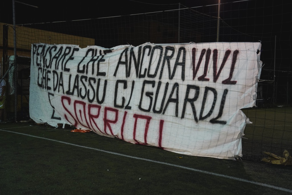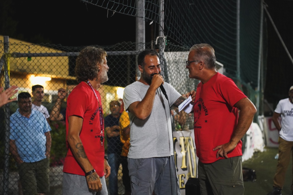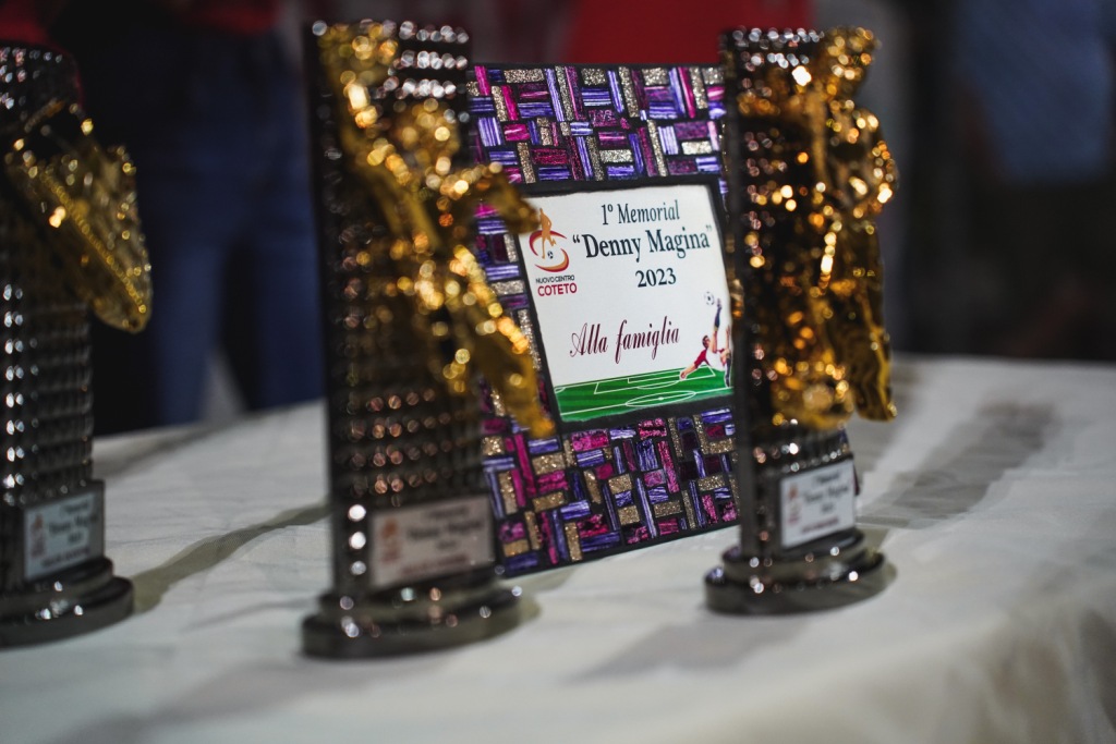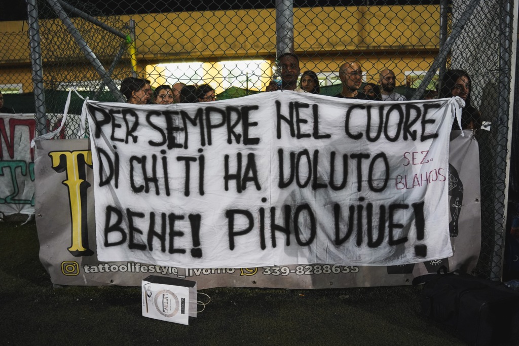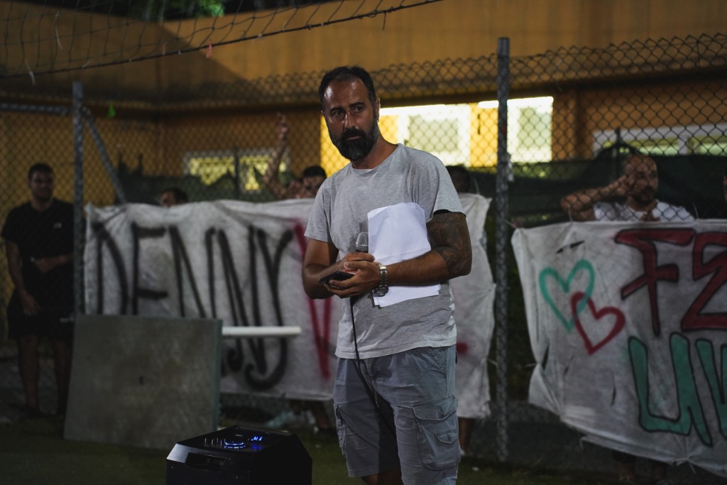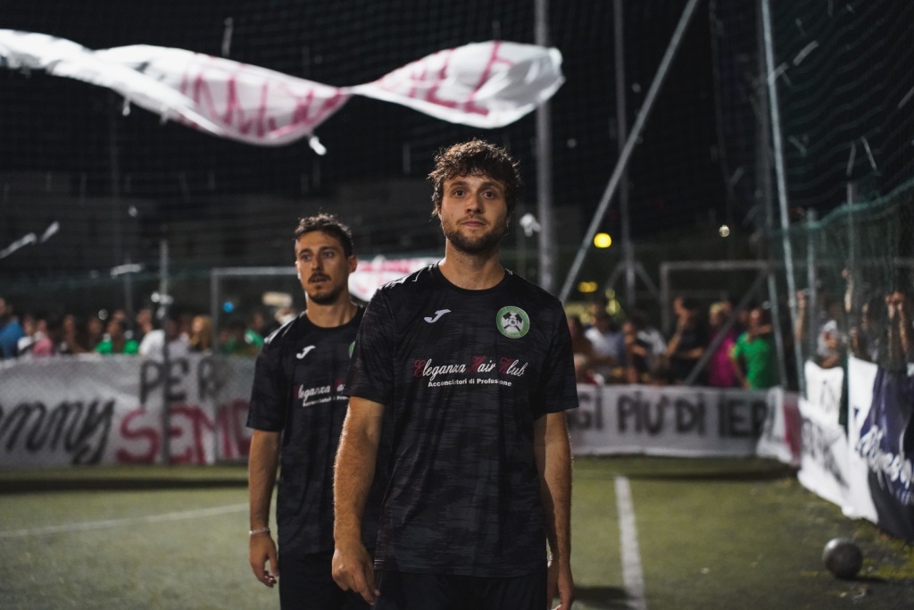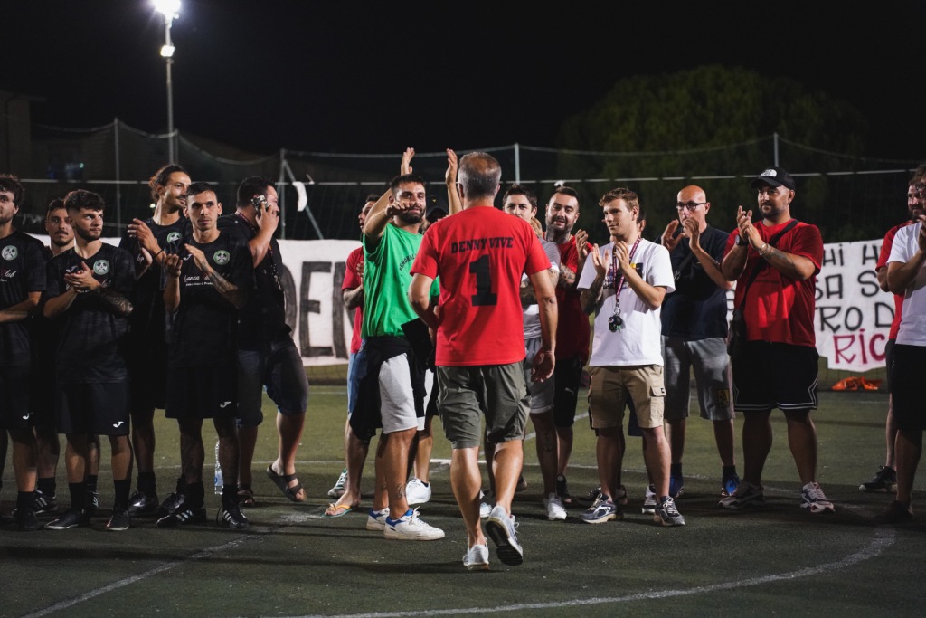 C’erano le stesse persone, se non di più forse della serata inaugurale, intorno al campo del Nuovo Centro Coteto per la serata finale del 1° Memorial Denny Magina. D’altronde sono state due serate, quelle del 23 maggio e del 22 giugno, significative non solo dal punto di vista del torneo ma anche e soprattutto dei sentimenti per i tantissimi amici presenti che, grazie alla coreografia allestita da Stefano Francalacci e Nicola Sighieri con il contributo di Noemi Gianmattei, Mirco Fabbrizzi e Cristiano Perciavalle e dei ragazzi del Memorial Mecio, hanno potuto ricordarlo con calore e colore. Tanti gli striscioni appesi intorno al campo (come in occasione della partita di esordio tra il Femmy United, la squadra di Denny nella quale gioca il padre Sky, e Ostriconda) come: “10 mesi senza il tuo sorriso, il tuo ricordo un amore condiviso”, “pensare che ancora vivi che da lassù ci guardi e sorridi” e “solo chi ha perso un amico sa cosa state passando. Il nostro dovere è ricordarlo”. “E’ stata una bella serata – racconta Stefano – abbiamo iniziato nel pomeriggio a preparare la coreografia. Ci aspettavamo tante persone ma non così tante, non c’era uno spiraglio d’aria a bordo campo. Visto l’ottimo riscontro speriamo di poterlo ripetere il prossimo anno. Sono fiero di essere stato coinvolto dalla famiglia nell’organizzazione del torneo e ringrazio tutti i ragazzi del Mecio, Nicola, Noemi, Mirco e Cristiano per l’aiuto. Per il resto che dire ci manca, mi manca Denny”. Al termine del minuto di raccoglimento chiamato dall’arbitro, dopo la presentazione della serata da parte di Gabriele Baronetto, e prima che le squadre cominciassero a giocare c’è stata la coreografia dei fumogeni; la batteria dei fuochi d’artificio invece è stata fatta partire a fine torneo, sulle note di We are the champions, al momento in cui è stata nominata la squadra vincitrice perché, per usare le parole di Stefano, alla fine è stata anche una serata di sport, di calcio. Così, come detto la squadra 1ª classificata del torneo è stata Real Bagnaia/Stagno, la 2ª il Benfica. Sono poi seguite le altre premiazioni: miglior portiere Sascha Toso (Benfica; miglior giocatore Andrea Garbini (Real Bagnaia/Stagno); capocannoniere del torneo Nico Landi (Mexico).