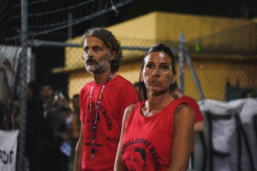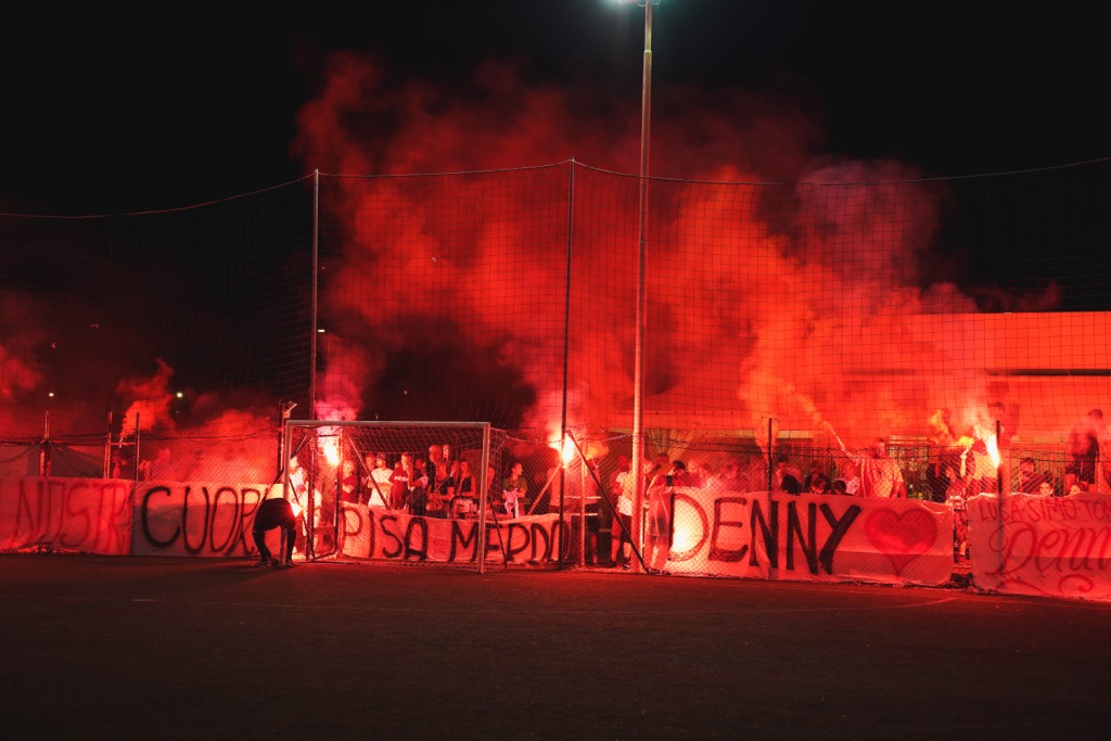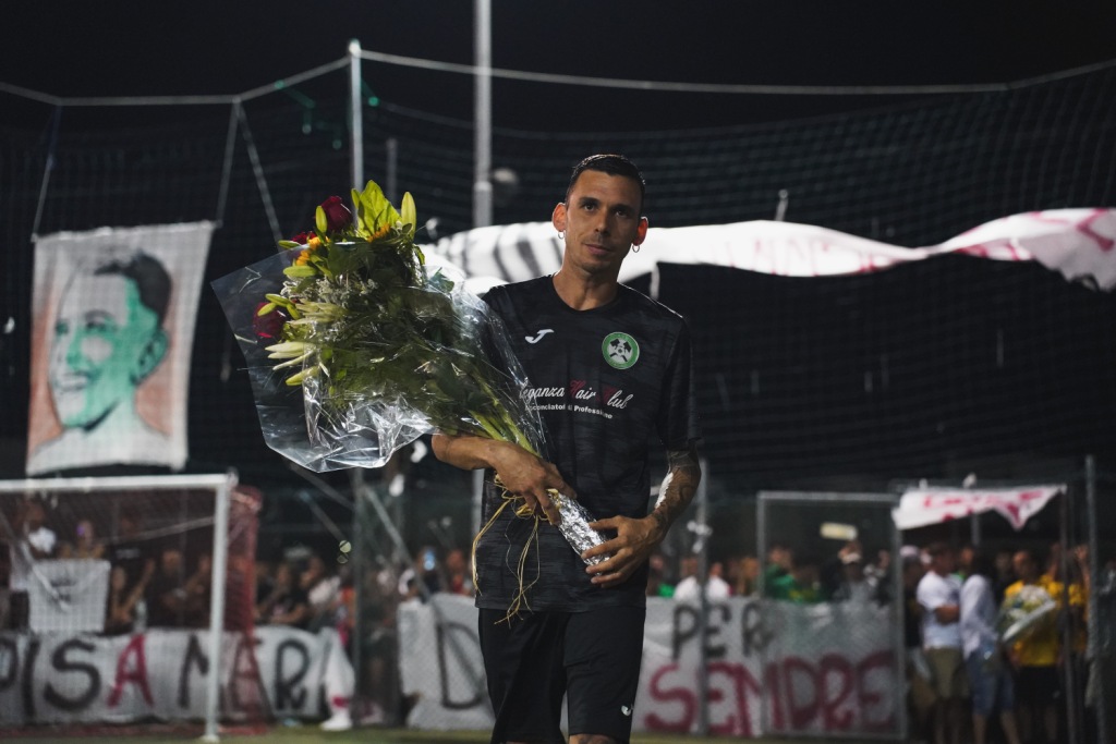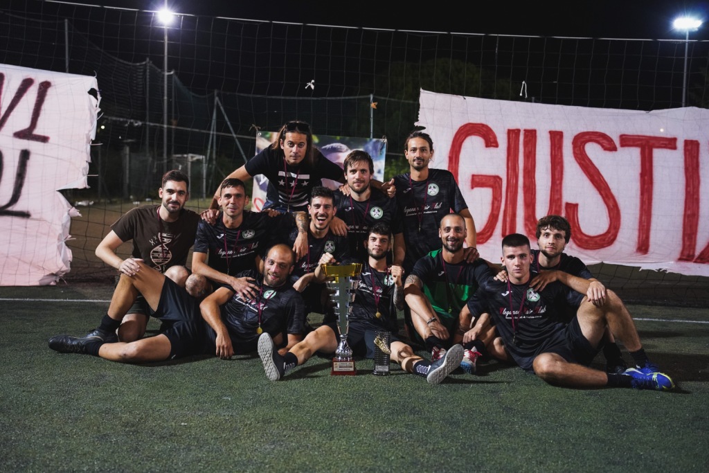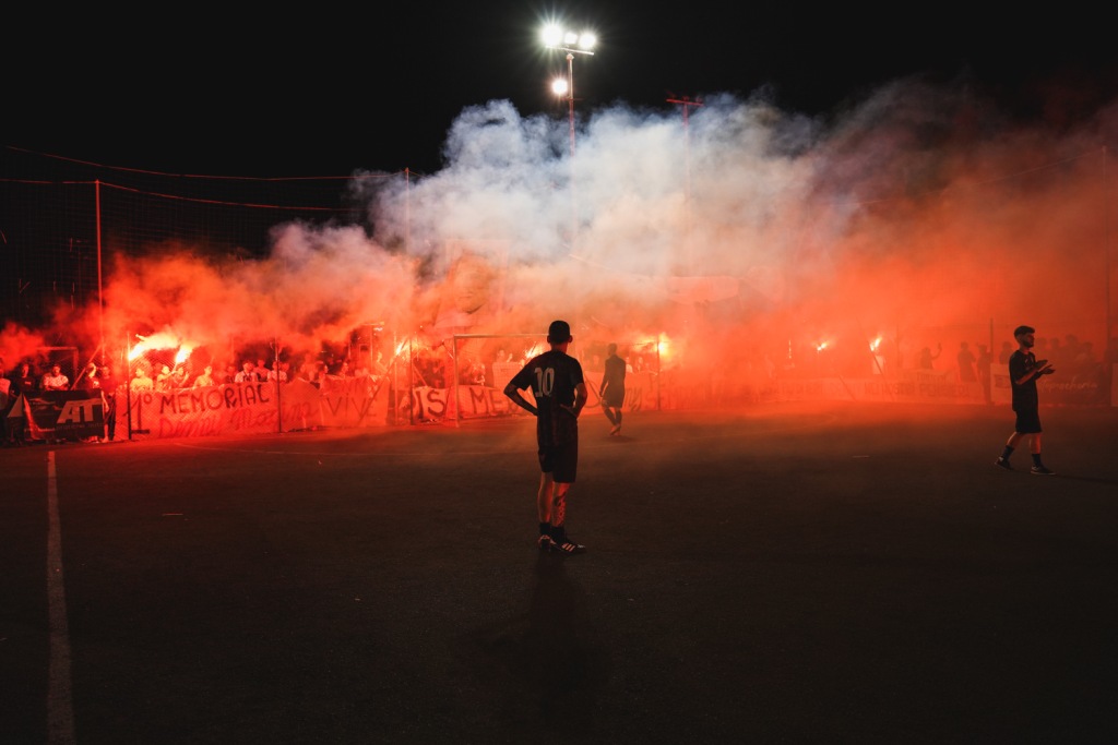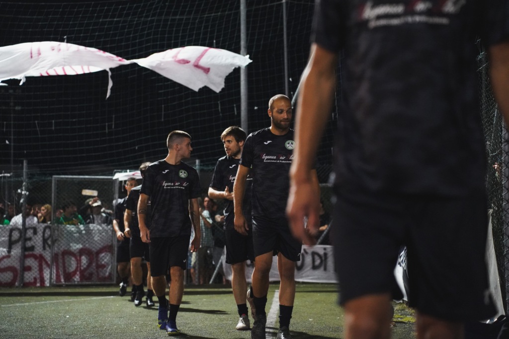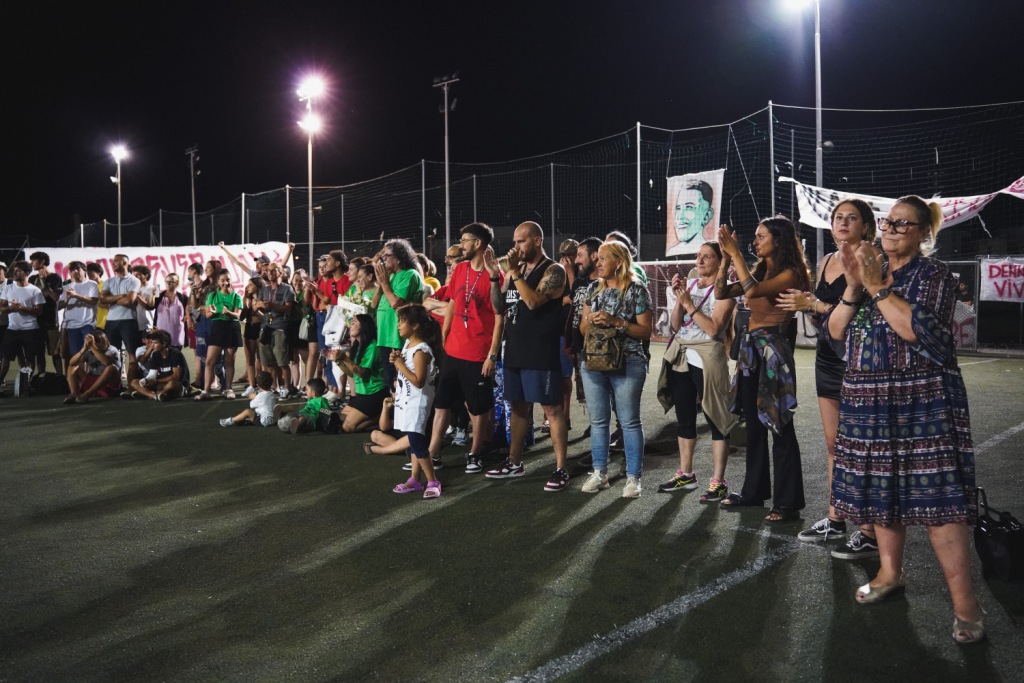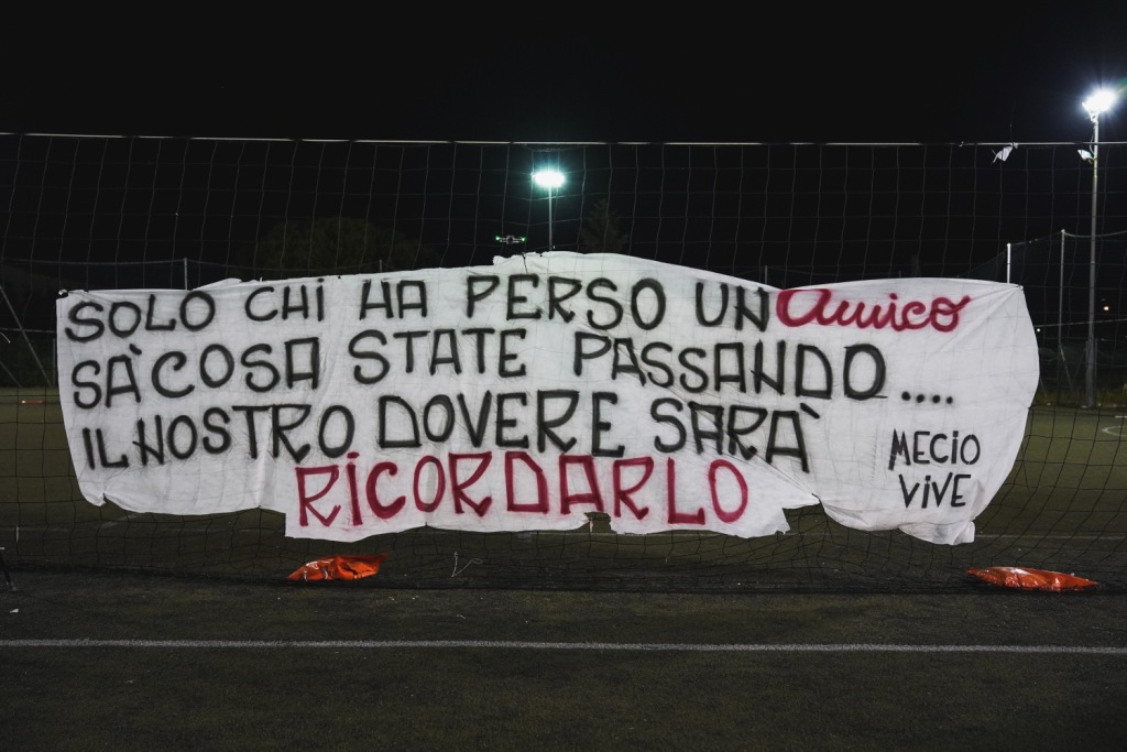 C’erano le stesse persone, se non di più forse della serata inaugurale, intorno al campo del Nuovo Centro Coteto per la serata finale del 1° Memorial Denny Magina. D’altronde sono state due serate, quelle del 23 maggio e del 22 giugno, significative non solo dal punto di vista del torneo ma anche e soprattutto dei sentimenti per i tantissimi amici presenti che, grazie alla coreografia allestita da Stefano Francalacci e Nicola Sighieri con il contributo di Noemi Gianmattei, Mirco Fabbrizzi e Cristiano Perciavalle e dei ragazzi del Memorial Mecio, hanno potuto ricordarlo con calore e colore. Tanti gli striscioni appesi intorno al campo (come in occasione della partita di esordio tra il Femmy United, la squadra di Denny nella quale gioca il padre Sky, e Ostriconda) come: “10 mesi senza il tuo sorriso, il tuo ricordo un amore condiviso”, “pensare che ancora vivi che da lassù ci guardi e sorridi” e “solo chi ha perso un amico sa cosa state passando. Il nostro dovere è ricordarlo”. “E’ stata una bella serata – racconta Stefano – abbiamo iniziato nel pomeriggio a preparare la coreografia. Ci aspettavamo tante persone ma non così tante, non c’era uno spiraglio d’aria a bordo campo. Visto l’ottimo riscontro speriamo di poterlo ripetere il prossimo anno. Sono fiero di essere stato coinvolto dalla famiglia nell’organizzazione del torneo e ringrazio tutti i ragazzi del Mecio, Nicola, Noemi, Mirco e Cristiano per l’aiuto. Per il resto che dire ci manca, mi manca Denny”. Al termine del minuto di raccoglimento chiamato dall’arbitro, dopo la presentazione della serata da parte di Gabriele Baronetto, e prima che le squadre cominciassero a giocare c’è stata la coreografia dei fumogeni; la batteria dei fuochi d’artificio invece è stata fatta partire a fine torneo, sulle note di We are the champions, al momento in cui è stata nominata la squadra vincitrice perché, per usare le parole di Stefano, alla fine è stata anche una serata di sport, di calcio. Così, come detto la squadra 1ª classificata del torneo è stata Real Bagnaia/Stagno, la 2ª il Benfica. Sono poi seguite le altre premiazioni: miglior portiere Sascha Toso (Benfica; miglior giocatore Andrea Garbini (Real Bagnaia/Stagno); capocannoniere del torneo Nico Landi (Mexico).