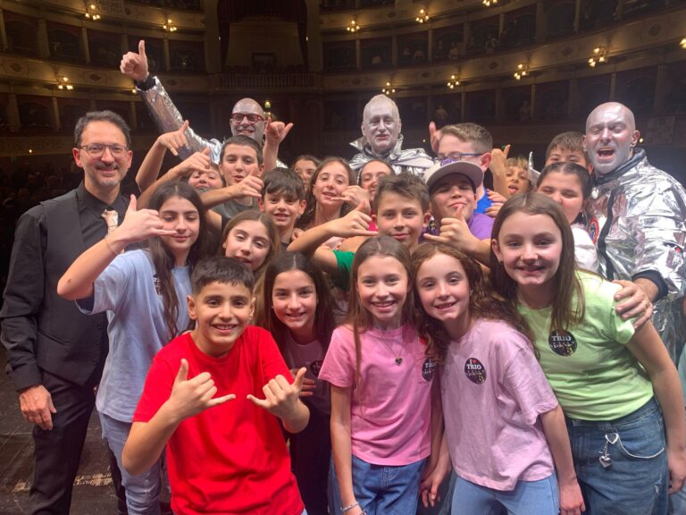 Cantanti in un famoso festival cittadino per una notte. Parliamo della 1ªA del plesso Michel della scuola media Bartolena che si è esibita come coro a Perché il Goldoni è il Goldoni insieme a Il Trio (Fabrizio Pucci, Giacomo Niccolini, Giorgio Niccolai) davanti a circa mille spettatori nel brano Noi ragazzi di oggi. Un brano che ha nel titolo la parola ragazzi, cosa che i tre componenti non sono che quindi avevano bisogno di ragazzi “veri” anagraficamente parlando per dare ancora più valore alla performance. E così è nata quella che oggi si chiama una feat. (da featuring, ovvero collaborazione musicale). A dirigerli Cristiano Grasso, referente per l’inclusione e la disabilità della scuola e insegnante di musica e coralità nei progetti di continuità, nonché maestro dei cori Monday Girls e Spring Time presenti sul palco durante l’evento di venerdì 21 febbraio. “Con grande partecipazione e entusiasmo – racconta Grasso, che ringraziamo per la disponibilità – gli studenti e le studentesse hanno dapprima svolto le prove a scuola per poi il giorno prima della manifestazione partecipare al sound check e il giorno stesso alla prova generale, calandosi quindi a tutti gli effetti nei panni di un concorrente e al tempo stesso conoscendo le varie figure di teatro come il direttore di scena, i tecnici delle luci e i fonici. Tra l’altro, si sono preparati con una loro parte corale e di coreografia, conquistando con Il Trio il secondo posto nel premio del pubblico e il sesto nella classifica generale. Ringrazio Annalisa Traversi, una Monday Girls e insegnante di lettere della 1ªA, che è stata il “gancio” per dare vita a questa collaborazione”. Per la classe è stata a tutti gli effetti una vera e propria esperienza formativa teatrale e musicale che per molti di loro proseguirà dato che fanno parte del coro della scuola media (sì, la scuola ha un coro ed è diretto da Grasso) e, chissà, anche nella prossima edizione 2026 di Perché il Goldoni è il Goldoni.