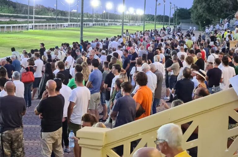 Caprilli pieno per la prima riunione in notturna della stagione 2022. “C’erano 4.900 persone, tutto esaurito – commenta a QuiLivorno.it un entusiasta Luca Salvetti – Ieri (domenica 17 luglio, ndr) ho visto appassionati di ippica e una marea di famiglie, bambini e gruppi di giovani. Siamo tornati a com’era prima. Mancavano le luci, avevamo detto che entro fine luglio si sarebbero accese e così è stato. L’operazione ippodromo rappresenta la serietà verso gli impegni presi e la risposta della città è stata la cosa più bella. Ora siamo a pieno titolo nel panorama nazionale degli ippodromi senza dimenticare che l’impianto rappresenta anche un luogo per spettacoli e eventi extra ippica”. L’Associazione Nazionale Galoppo ha celebrato il successo della serata su Fb con un “Bentornato Caprilli” finale. Le riunioni in notturna proseguiranno, come da calendario, fino al 28 agosto compreso.