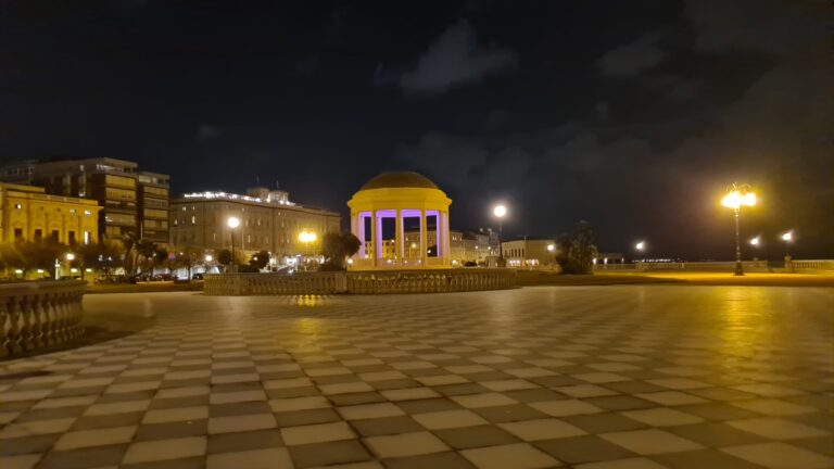 Così ecco che si colorano anche le palme in passeggiata, si accendono i lampioni che portano allo Scoglio della Regina, si illumina la fontana di Nettuno che risponde, in un suggestivo duetto fatto di luci e rimandi poetici, con le luci del gazebo della Terrazza che si fanno coccolare dall’immenso nero notturno che inghiotte il mare addobbato di lampioni e abbracci di innamorati. Come si fa a non essere romantici davanti a un paesaggio così? Quanto sei bella Livorno… quando è sera…(e non solo)…